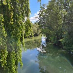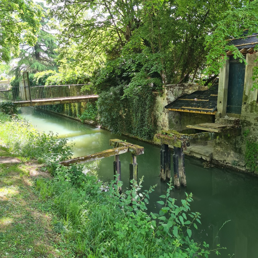 Dès la sortie de la gare suivez le GR jusqu’à longer le canal, ses maisons attenantes et leurs pontons bucoliques. Arrivé au niveau du collège vous avez le choix passer dans la ville ou contourner la ville pour être plus vite en campagne.