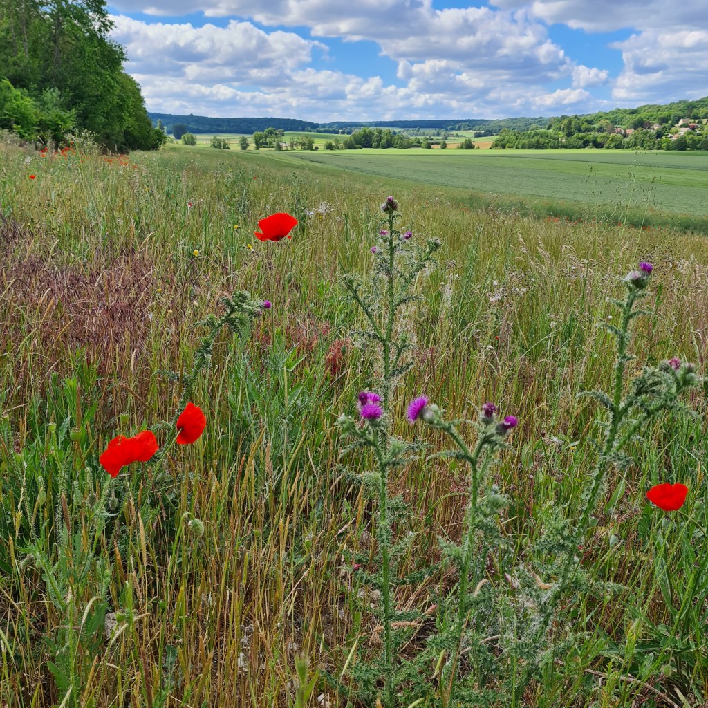 Une fois sortis vous approcherez alors de la fin de la balade en retrouvant le GR 14 pour une dernière plaine agricole dégagée qui vous fera arriver près d une mare qui marque le retour à la vie urbaine et un passage dans le centre ville pour si vous le voulez un petit verre dans un café avant de reprendre le RER E ou la ligne P vers Paris.