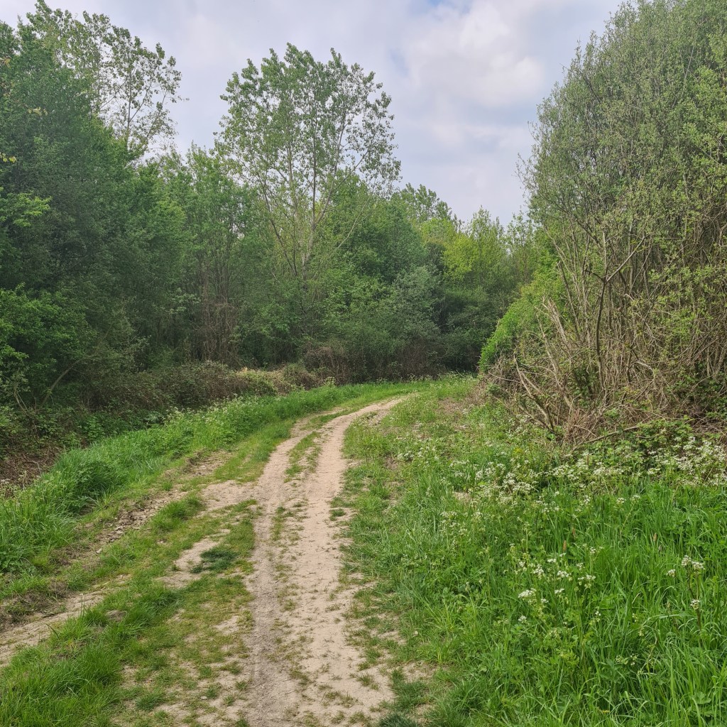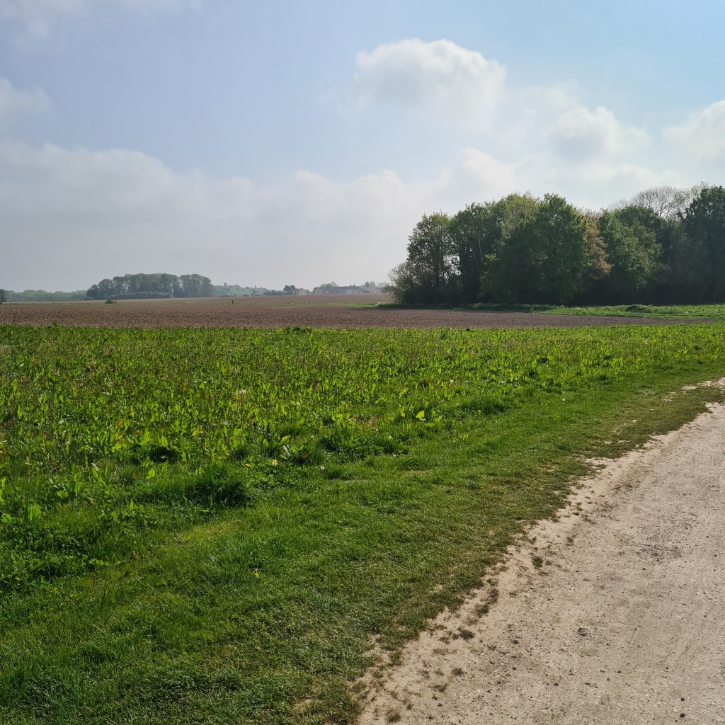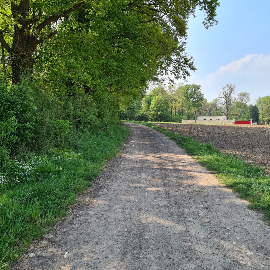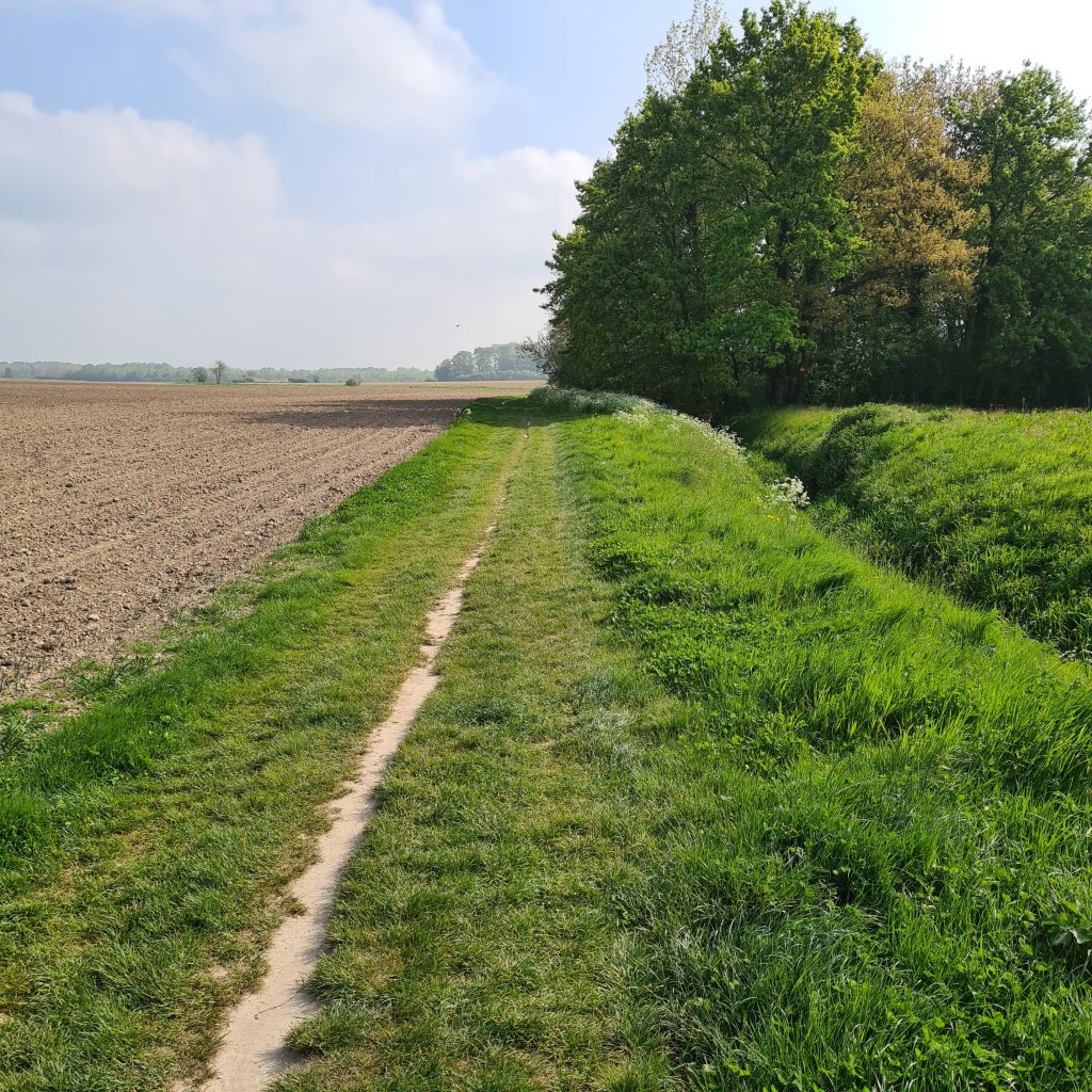 A partir de ce lac vous suivez un sentier en herbe qui navigue à travers lez champs de maïs jusqu’au km 3. A cet endroit le GR ( rouge et jaune) va vers votre gauche suivez le. Vous continuerez à serpenter à travers champs jusqu’à la commune de Faviere