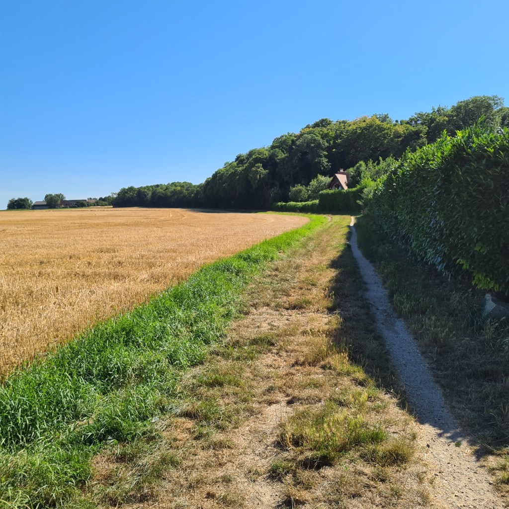 Vous rentrez dans l’avant dernière partie de cette randonnée. Si il fait beau temps, vous aurez donc déjà 21 km dans les pieds et le soleil ici se fera pesant. Vous traversez une zone de haras en plein soleil puis de champs durant 2 km, mais courage car vous arrivez enfin dans une grande zone forestière et son ombre bienvenue. La foret de Crecy vous attends pour la dernière étape.