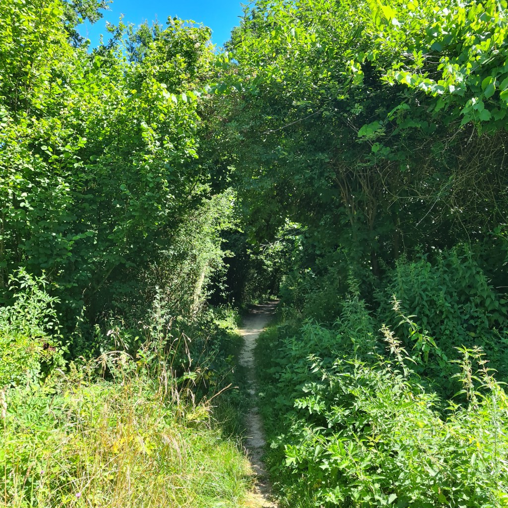 C’est le bon moment pour faire une pause repas, la centre ville est très intéressant a voir, il y a des bancs, des magasins, des boulangeries et bar… bref tout pour se restaurer. Une fois reparti vous allez devoir traverser la partie nord de la ville qui est moins intéressante. Vous devrez passer sous la N4, le GR1 oblique vers la droite mais je vous conseille de partir tout droit pour éviter un chemin abandonné et qui passe a travers un champs. Arrivé vers un rond point vous quittez enfin la route pour un sentier encadré par des arbres.
