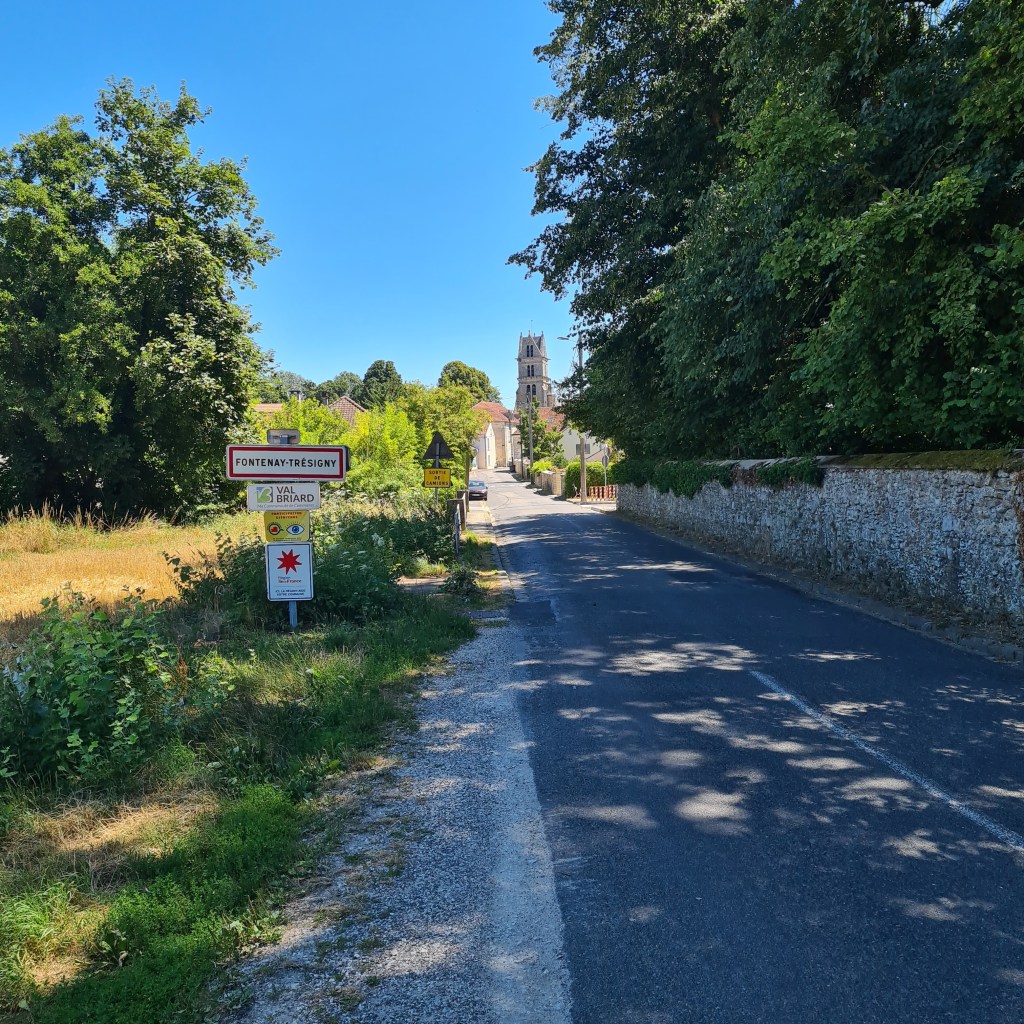 C’est le moment le moins agréable de la randonnée un long passage presque uniquement sur l’asphalte et donc les voitures (mais rares) qui mène à Fontenay Tresigny. le paysage est toutefois agréable et variés, des Haras, des prairies pour vaches, des champs, des passages sous couvert forestier. Prenez patience, ce passage fait 4km donc 45 mn.