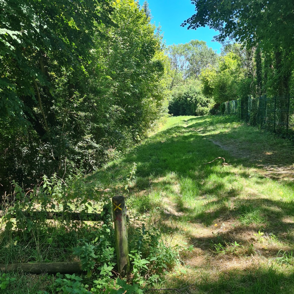 Suivez le sentier balisé PR (jaune) pour traverser cette forêt en direction de Lesches, ce sentier vous amènera le long de la voie ferrée. Vous devrez la longer jusqu’au 1 er passage possible, le sentier vous ramenera alors pour la 3 ème fois sur la canal de Chalifert.