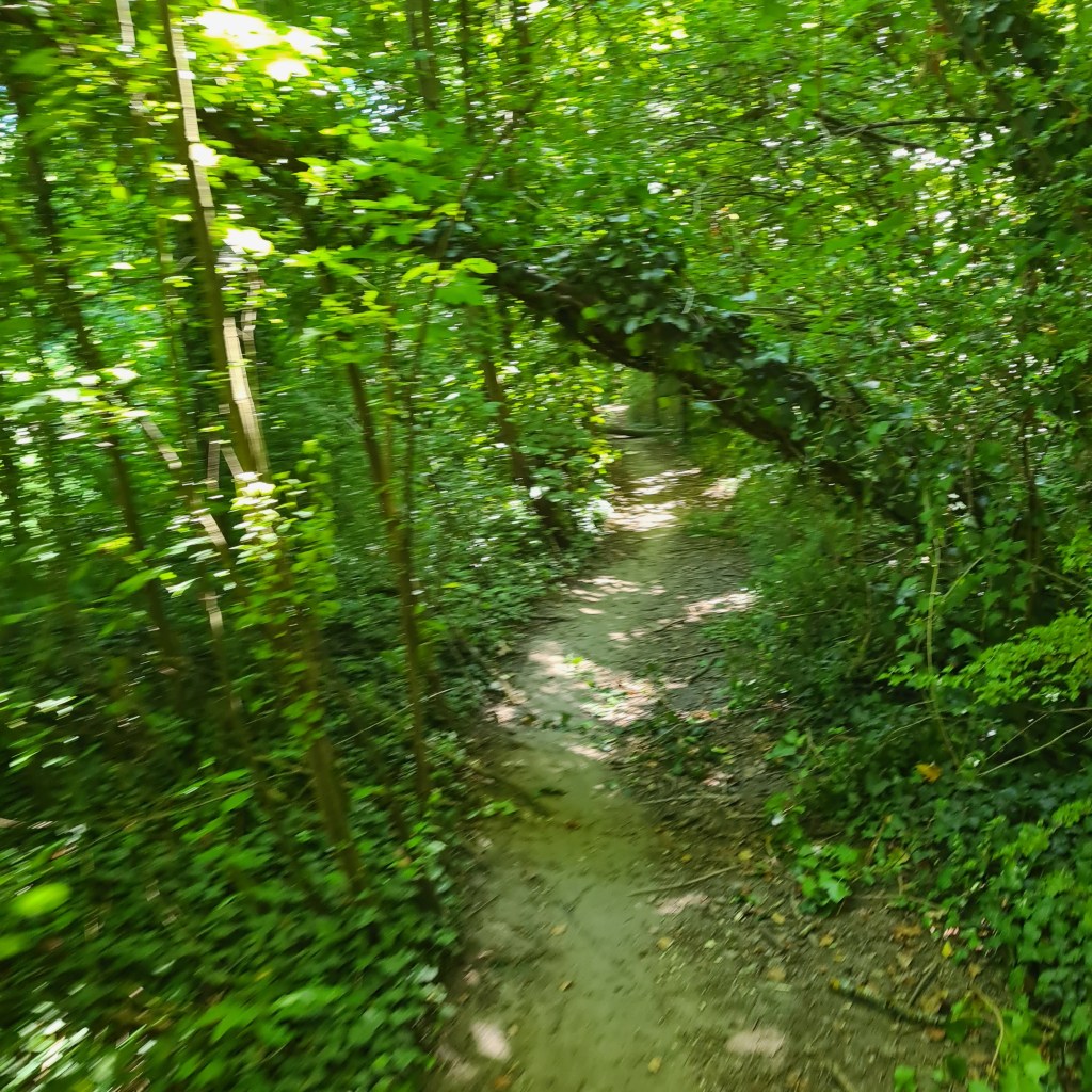 Arrivés au pont vous passerez en dessous jusqu’à arriver a la pointe de la presque-île sur laquelle vous êtes. Le sentier repart alors en sens inverse le long d’un petit bras de la Marne. Vous revenez alors vers la ville. Une montée s’engage alors sur 2 km vous menant à la forêt de Lesches.