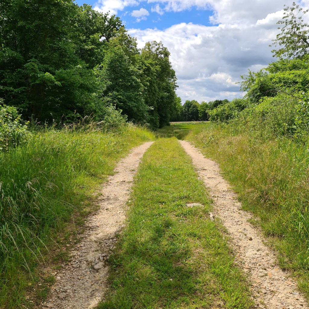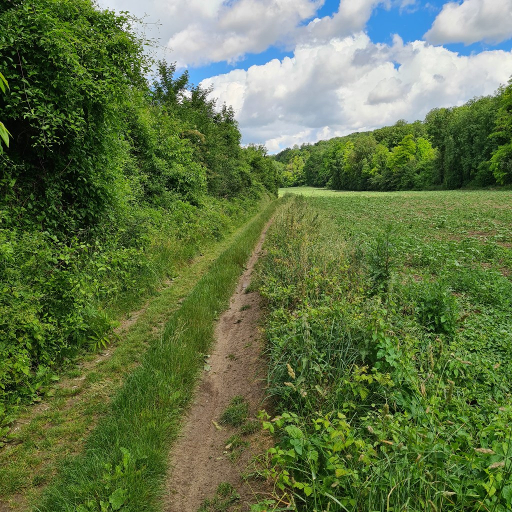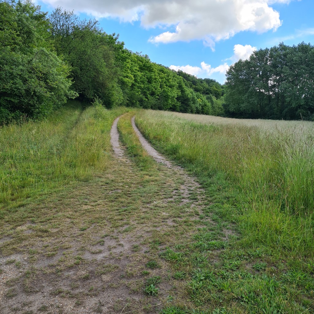 Sortez de la gare vers le Nord (sur votre gauche dans le sens de votre train) et suivez le balisage jaune d’un PR, qui vous fera vite sortir de la ville à travers champs pour vous amener vers le bois de la Muette.