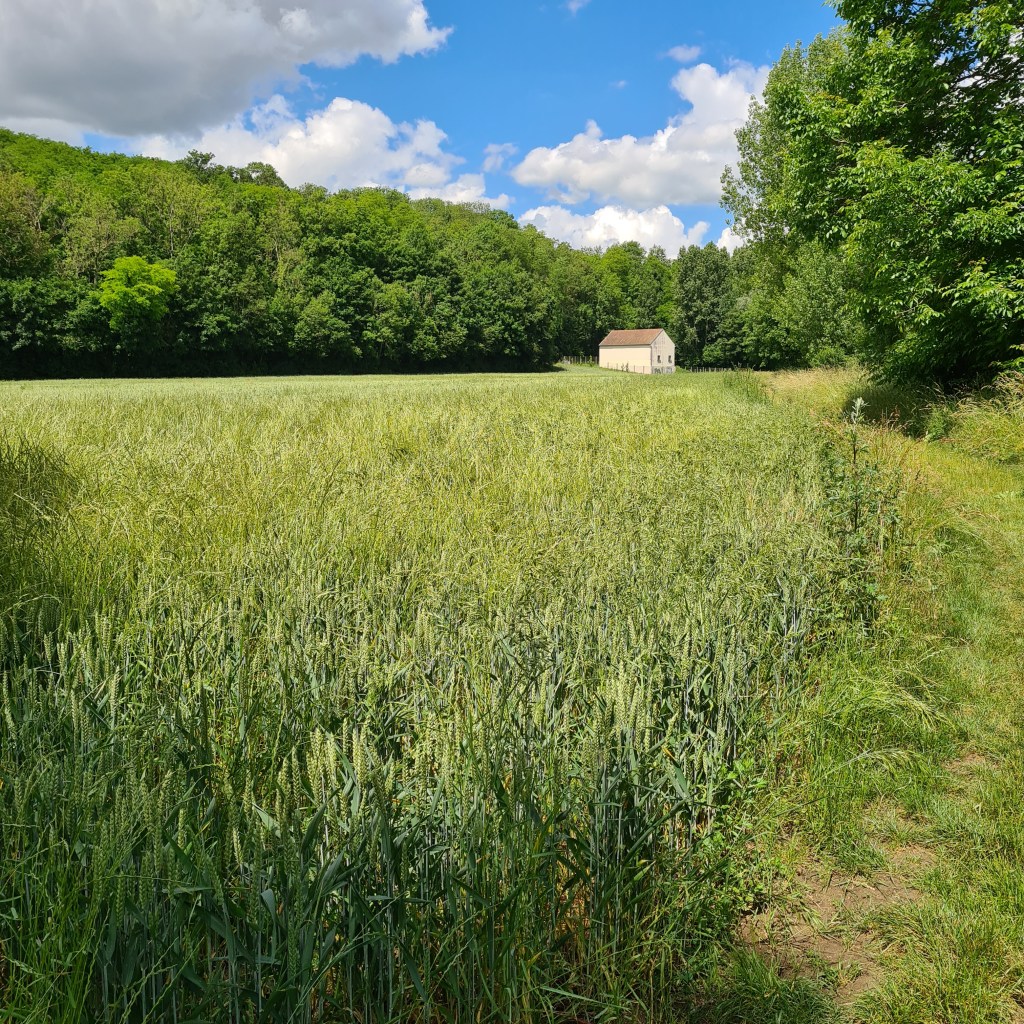 Vous traversez alors le bois de la Muette, pour déboucher sur une plaine agricole en devers qui vous amène près de la Marne, bien qu’elle ne soir pas bien visible à cet endroit. C’est un moment un peu long car vous longez la route et sa circulation bien que très légère.
