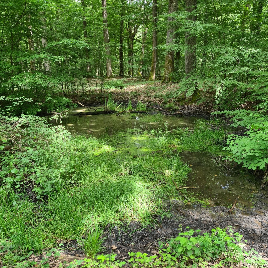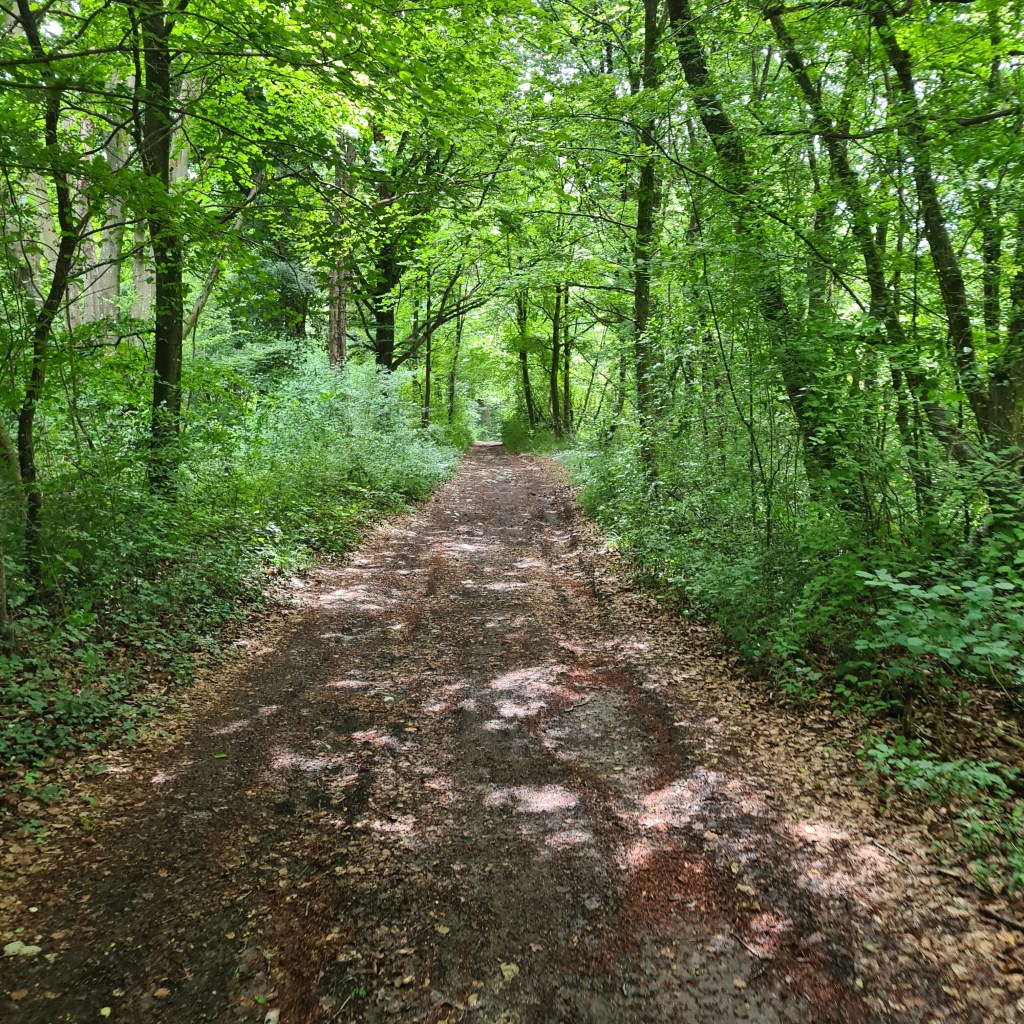 Vous allez traversez la foret de Montceaux, d’abord ponctuée de prairie, elle se densifie au fur et à mesure que vous vous y enfoncez, toujours en restant sur le GR11. Vous arriverez alors sur une départementale qui coupe la forêt.