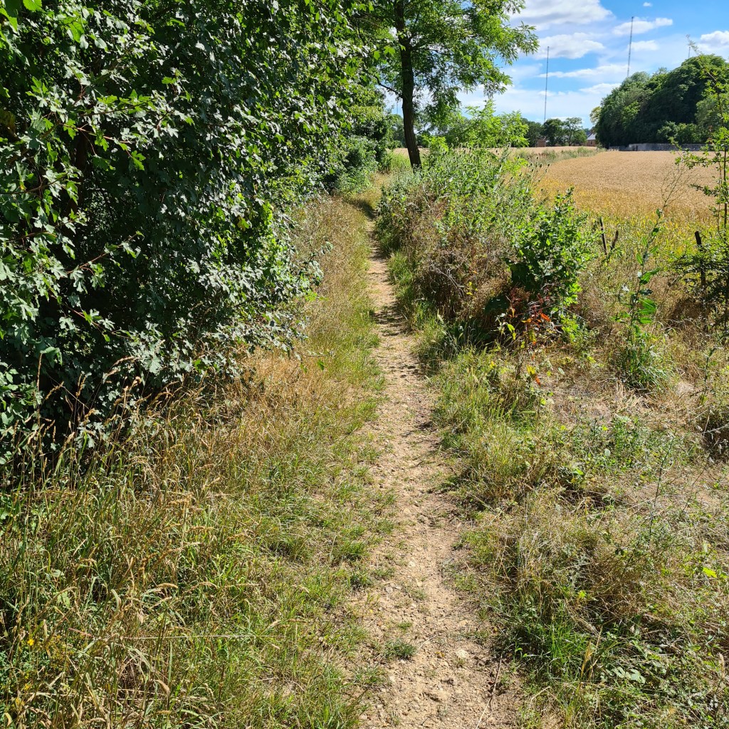 Vous restez sur ce même sentier qui vous fera traverser le Bourg, un quartier de Savigny le temple. Vous passerez entre les cours intérieurs pour arriver dans une zone agricole.