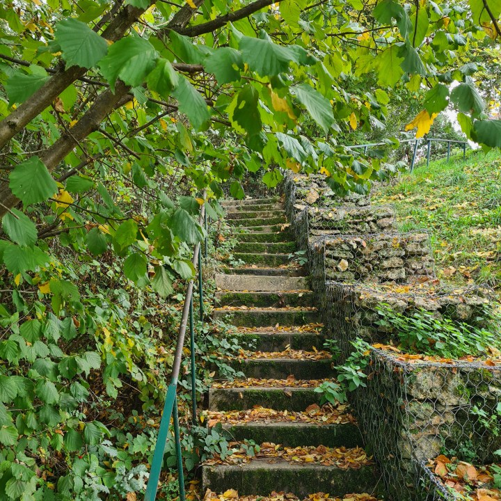 Une grande montée avec un beau lavoir et une mini cascade vous attendent jusqu’à passer sous la voie sncf puis le quartier de Montlevon ( le pr vous fait faire un détour pour éviter la route et rester sur des sentiers si vous êtes en forme cela vaut le coup). Il suffira ensuite de suivre le Pr balisé jaune qui vous fera passer à travers champs jusqu’à une dernière zone boisée qui vous mène à votre point de départ. Les escaliers sous l’arbre contre la gare, bravo, vous êtes arrivés.