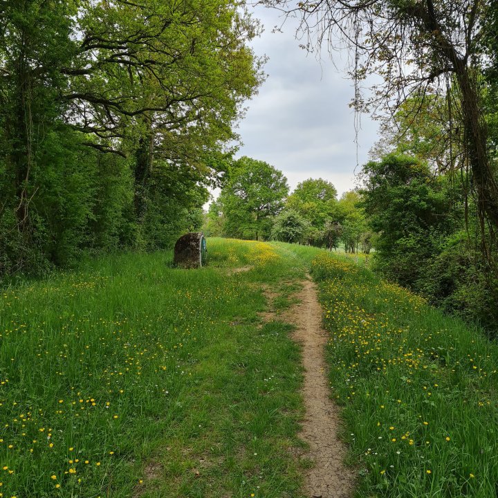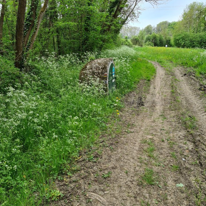 Traversez la route et continuez tout droit en longeant une autre route départementale. A un moment sur votre gauche un nouveau sentier vous permettra de retourner dans la forêt pour quitter cette route pas forcément agréable. Vous arriverez alors sur un sentier particulier en suivant les balises, celui de l’aqueduc de la Dhuys. C’est un classique des randonnées du 77, un aqueduc souterrain construit sous Napoléon III pour amener de l’eau à Paris. Il est encore en marche jusqu’à Marne la vallée. Il se caractérise par de petites bornes, et des regards en pierre moussus le long de son parcours. Vous le suiverez jusqu’à l’orée de la forêt.