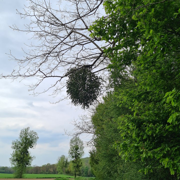 Vous pouvez suivre le GR pour faire un détour pour voir un chêne planté par Henri IV au carrefour de la Marche. Sinon vous pouvez couper par un petit chemin et vous retrouvez de nouveau sur ce GR. Vous allez traverser le voie ferrée, puis arriver devant une route départementale.
