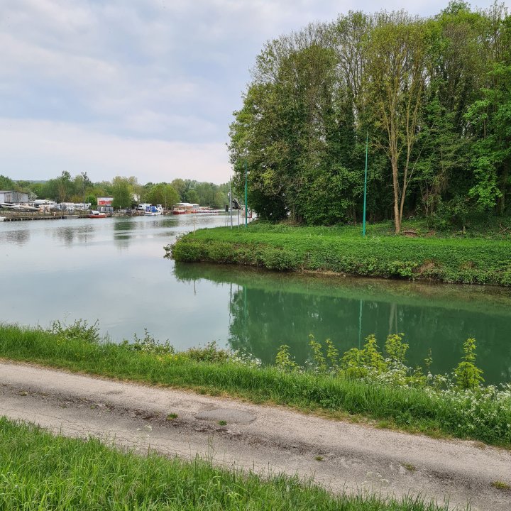 Une fois sur les bords de Marne, prenez sur votre gauche. En longeant la rivière, vous finirez par rejoindre le chemin du GR 1. C’est une zone boisée près de la Marne qui va peu à peu s’effacer au profit de la ville de Meaux. On approche de la fin.