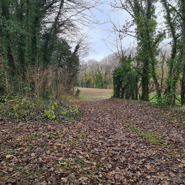 Une fois arrivé au croisement au dessus, quittez le GR en prenant sur votre droite. (ce GR mène à Meaux via une superbe balade : https://fromparisest.fr/2022/06/07/damartin-meaux-esby-22-33-km/) Prenez un PR balisé en jaune qui longe le petit ru de la Maquerelle. Allez vers le village de Juilly qui se situe au km 5.