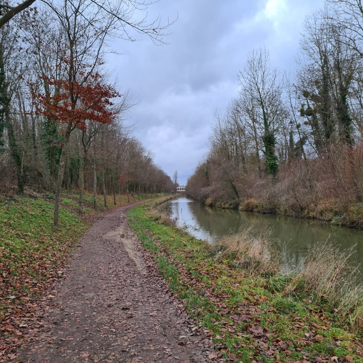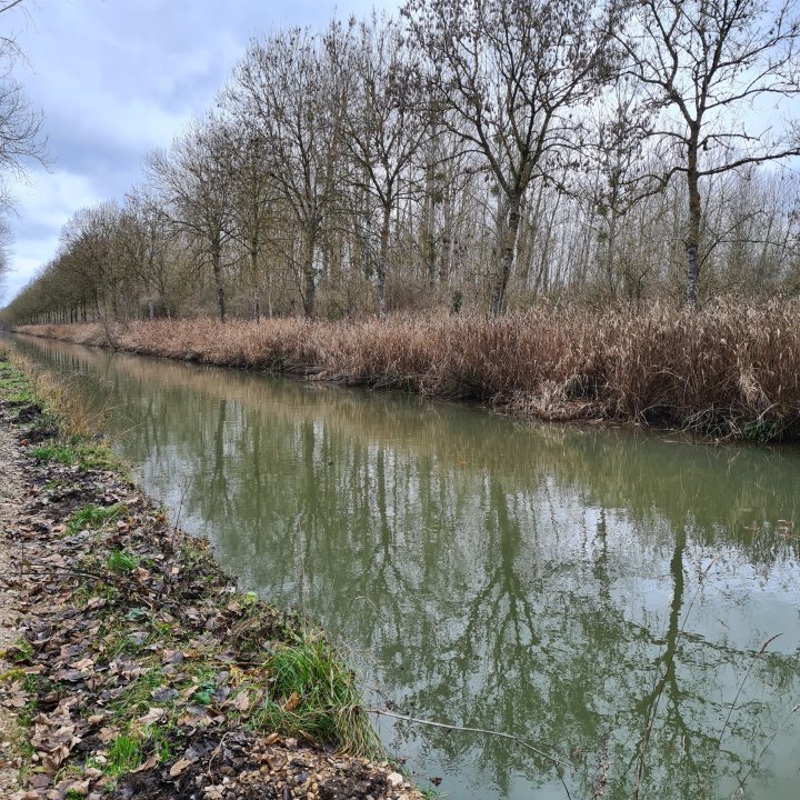 Longez canal vers l’Est sur votre droite. Vous arriverez au niveau d’un pont au km 15. Passez sur l autre rive en faisant une boucle. C est parti pour inédit loooongue ligne droite de 4 km, un peu ennuyeuse mais de nombreux oiseaux et ragondins viendront égayer ce passage.
