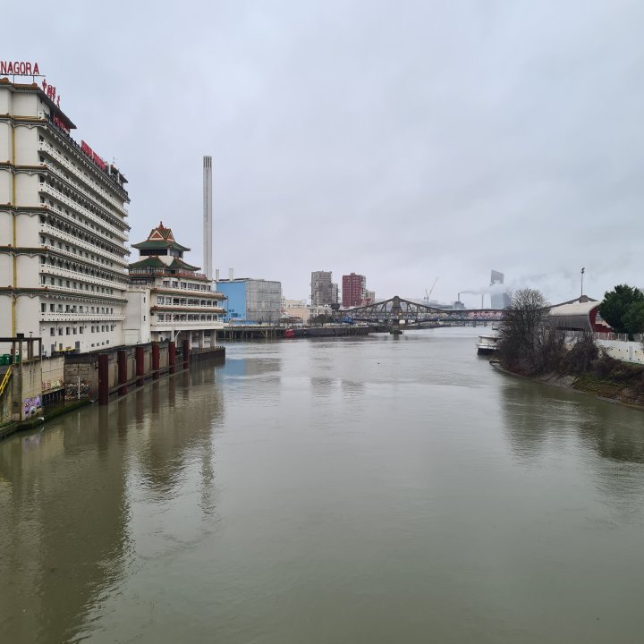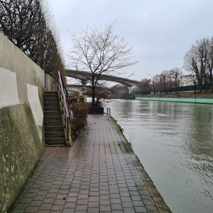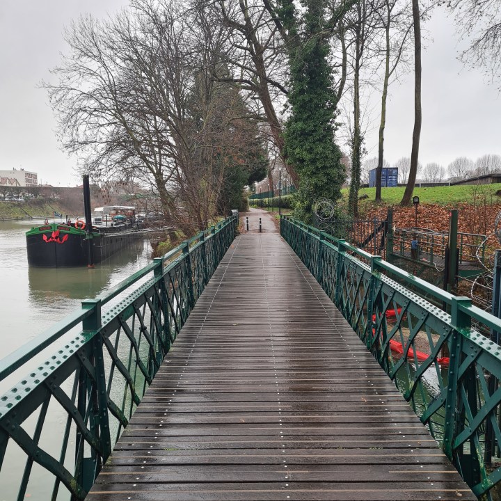 Vous arrivez au niveau du port industriel de Bonneuil avec ses paysages tout droit sortis du Havre alors que nous sommes presque aux portes de Paris. Au KM 18, à la sortie de ce port, prenez la passerelle de Créteil pour changer encore de type de paysages. La passerelle peut etre fermée en 2023 pour travaux, il y a un service de passage en navettes fluviales pour le remplacer.