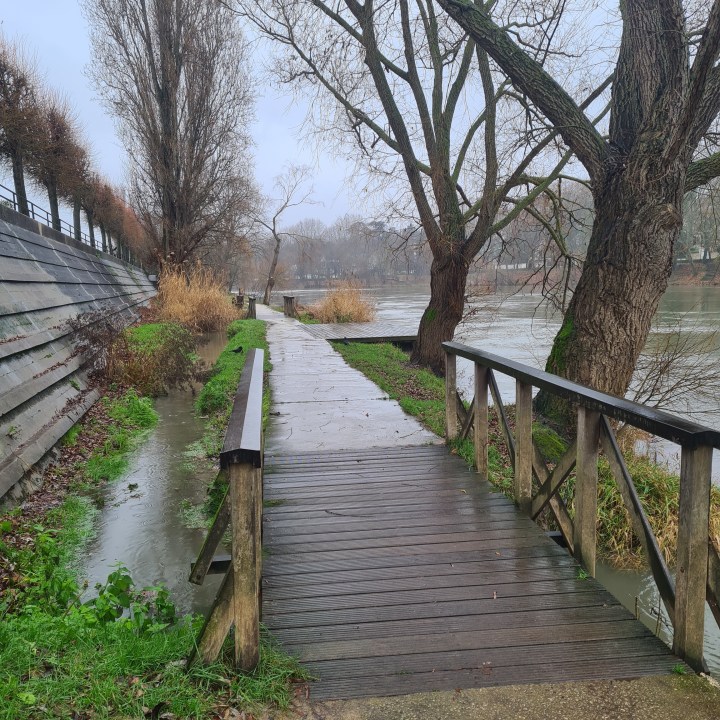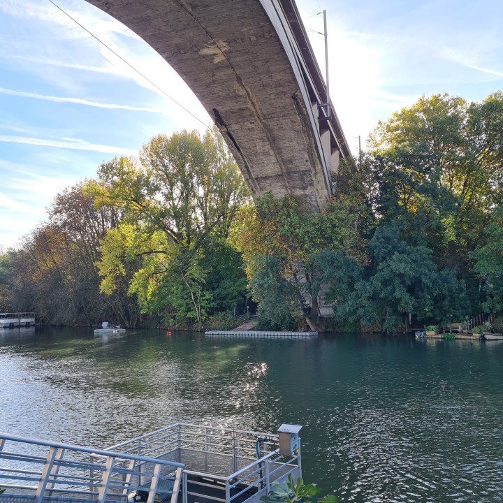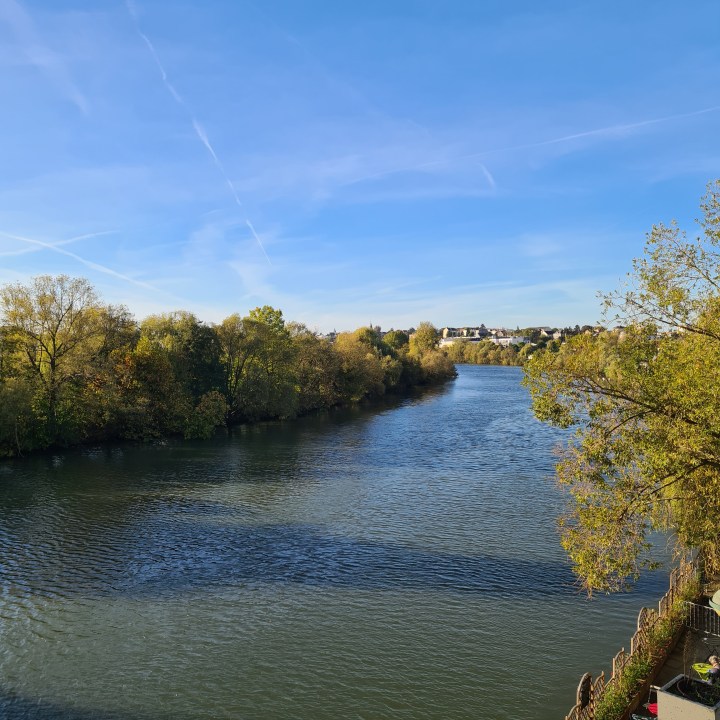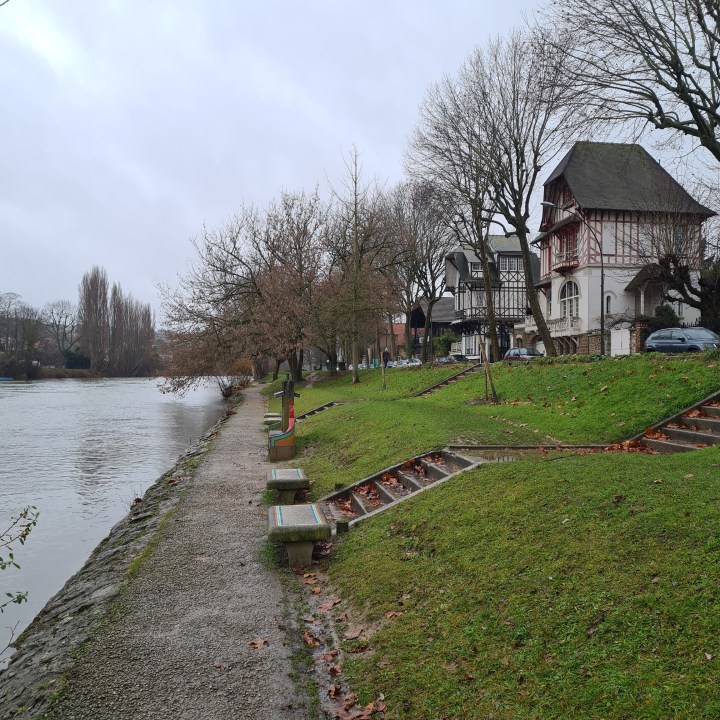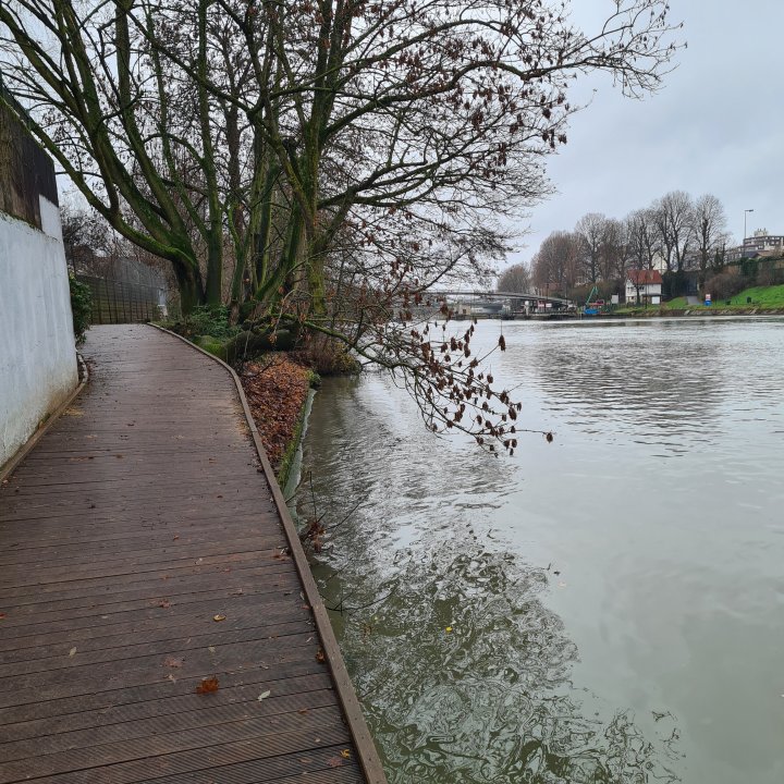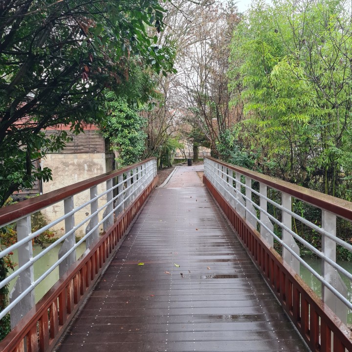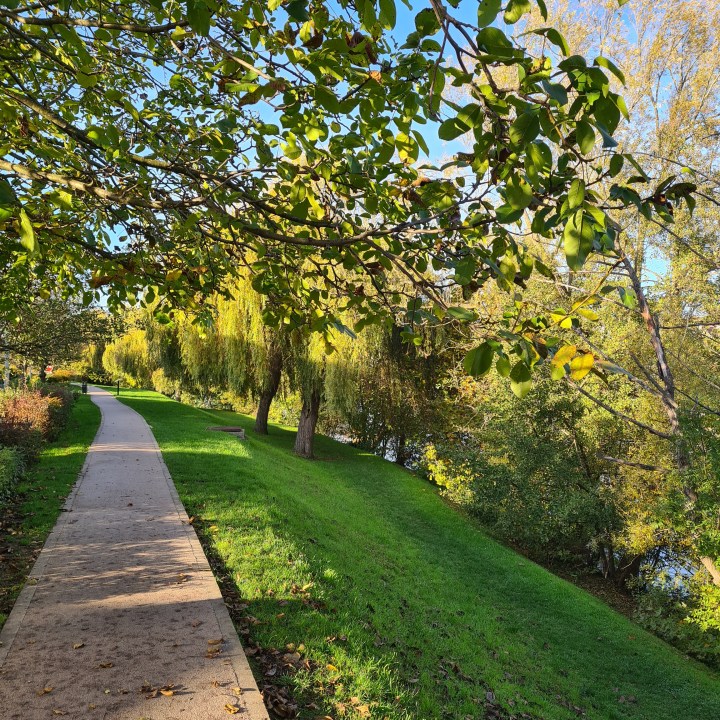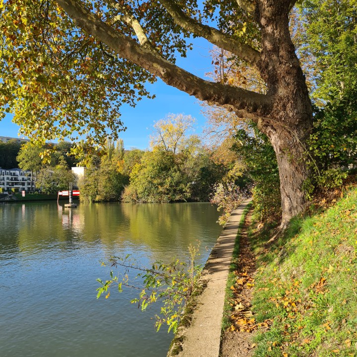 Traversez la passerelle pour passer sur la rive droite de la rivière. Le chemin se divise en 2 ou trois sentiers qui longent la Marne, un proche de l’eau, l autre un peu en retrait et lz dernier sur le trottoir. Privilégiez le premier. Vous continuez votre route en passant près d’un ensemble d’îles et de guinguettes typiques. Juste avant le KM 5, le pont de Nogent est doublé d’une nouvelle passerelle piétons qui vous permet de repasser sur l’autre rive au niveau du parc du Tremblay. Traversez ici.