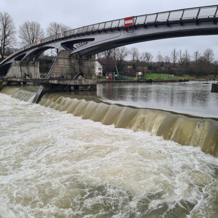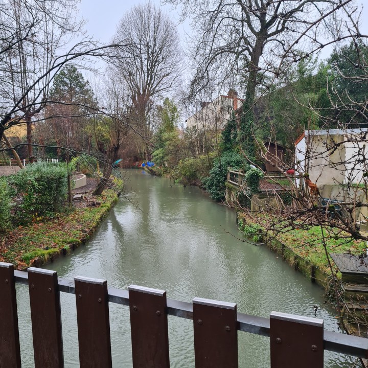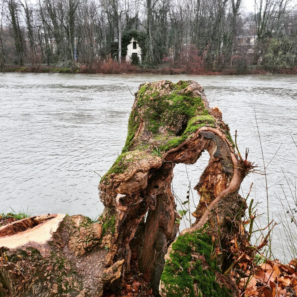 Prenez la première passerelle pour retourner rive droite, vous traverserez alors une petite rue aménagée en coulée verte très agréable qui vous ramène très vite sur la Marne. Après un petit passage ennuyeux vous arriverez alors au niveau de l’usine d’eau de maison Alfort et l’île des Saints- pères.