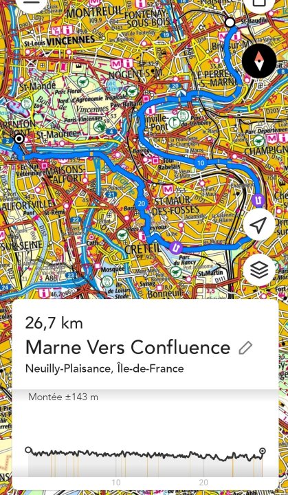 Vous êtes maintenant sur la rive gauche : Longez le parc du Tremblay, puis un camping jusqu’au pont autoroutier. Ici je vous conseille de suivre les balisage du GR pour longer un bras de la Marne (Poulangis) et vous éloigner du cours principal jusqu’à revenir au niveau de la fin de l’île Fanac et le pont de Joinville.