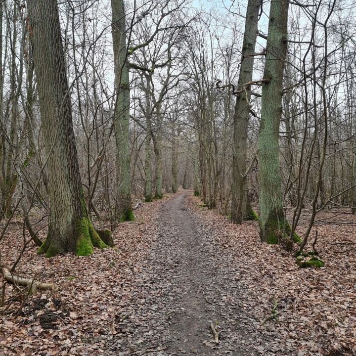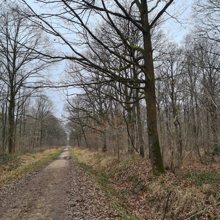 Une fois dans le bois de la Grange suivez le balisage Jaune et Rouge du GR pour la traverser. Au KM 2 vous pouvez soit suivre le GR pour vous retrouver sur la route vers le bois de Saint martin, soit vous aventurer un peu vers l’Ouest (gauche) pour éviter une portion de route.