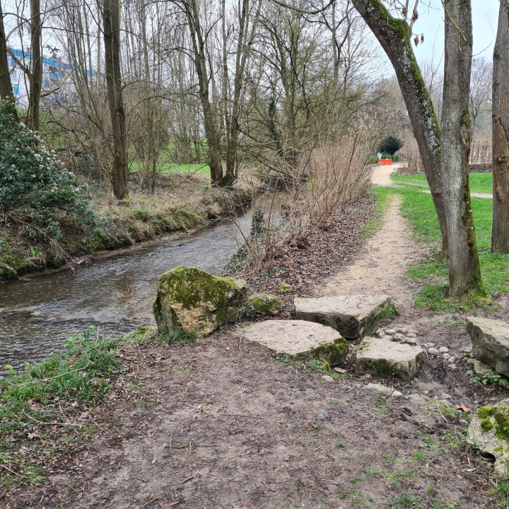 Une fois le pont passé , je vous conseille de sortir du GR pour passer au travers du parc de l’ancien monastère, puis de reprendre le GR sur votre gauche pour arriver sur le bois de Saint Martin.