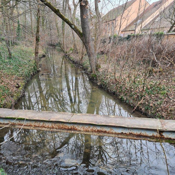 Une fois sorti par la porte sud du bois, vous devez continuer à suivre le GR en direction du Sud vers le pont sur le Morbras dans la ville de La Queue en Brie. Je suis déja passé par la lors d’une précédente balade :