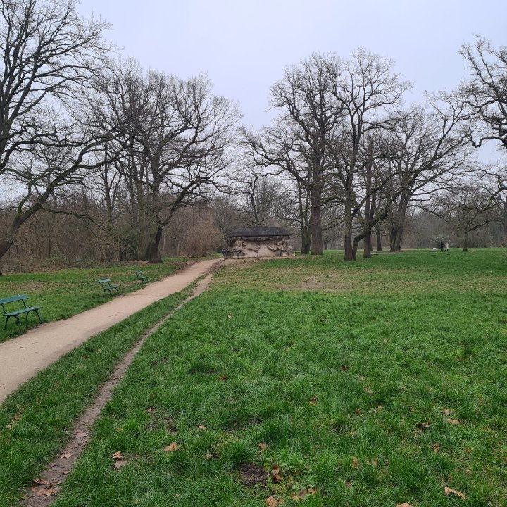 Sortez du métro (ligne 1), dirigez vous vers le terminal de bus et traversez vers le nord pour vous retrouver sur le GRP du bois de Vincennes balisé en Jaune et rouge. Prenez-le vers l’Est en direction du lac des Minimes. Vous croiserez un endroit particulier: le socle de la statue de Beethoven, car la construction de celle-ci fut abandonnée durant la première guerre mondiale, le sculpteur étant mort au combat.