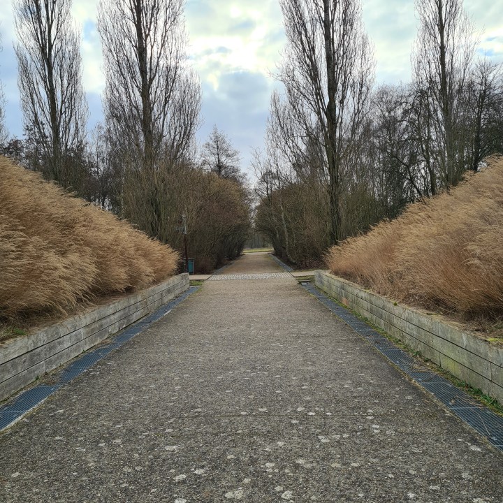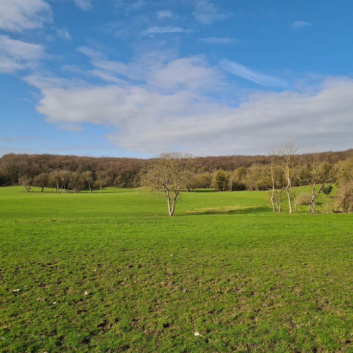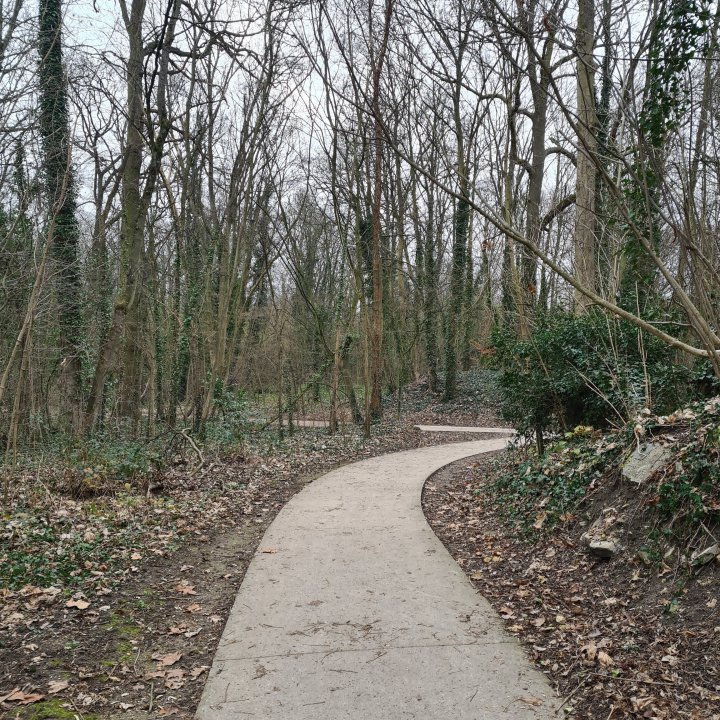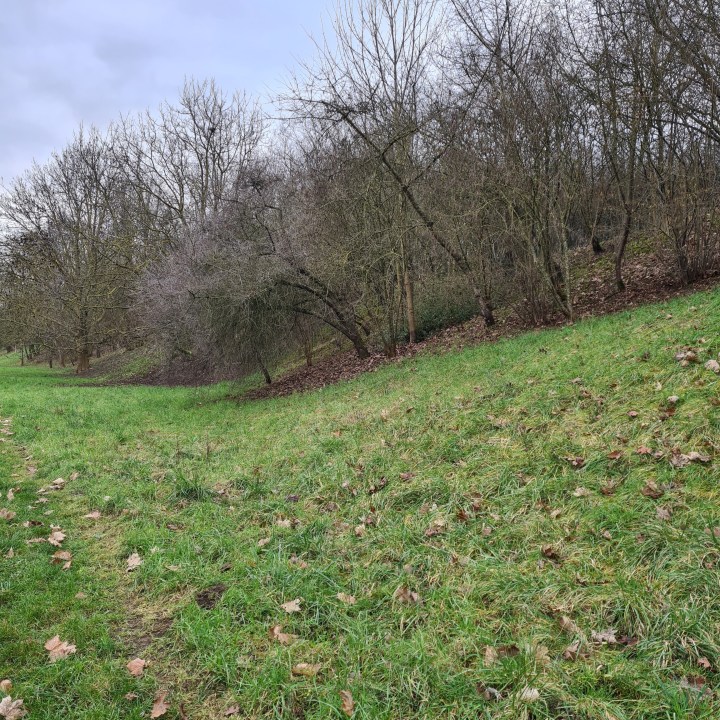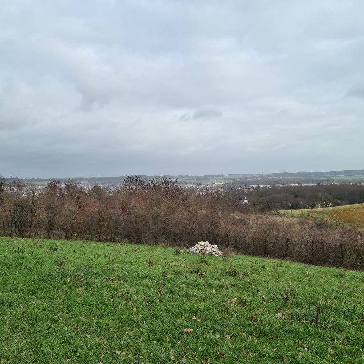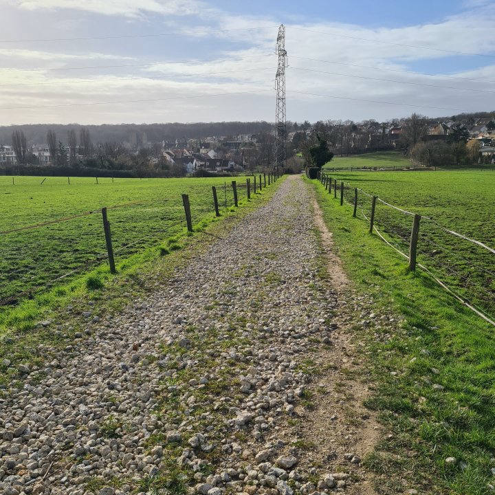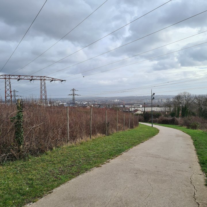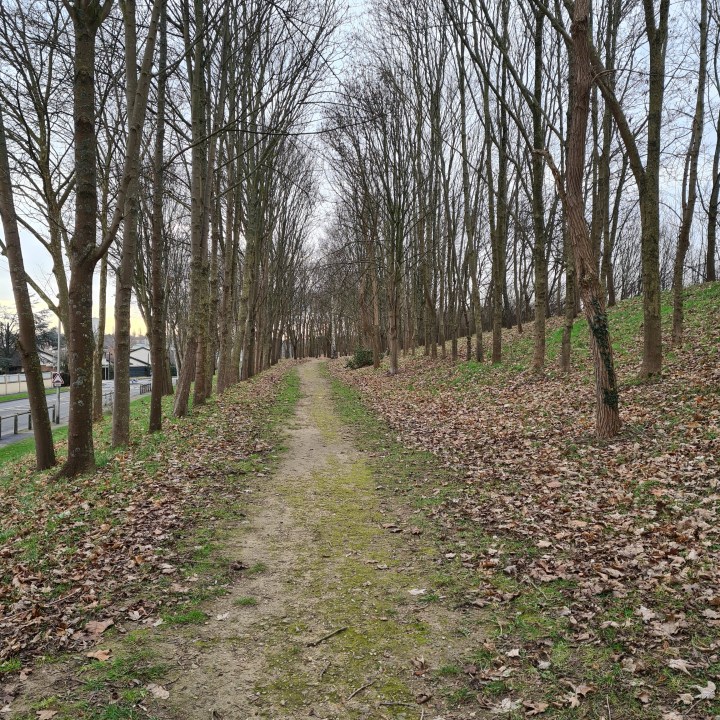 Vous arrivez alors au niveau de la butte de Monceleux. C’est un espace étonnant que vous allez devoir longer. Une espèce de grande prairie agricole entourée d’immeubles, une sorte d’îlot qui résiste à la bétonisation même s’il parait délaissé et menacé à terme. Suivez ensuite le GR pour arriver jusqu’à l’entrée Nord du parc forestier de la Poudrerie.