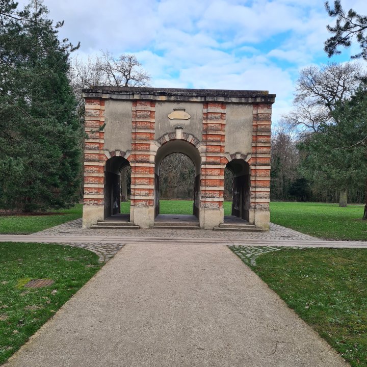Vous devez traverser le parc de la poudrerie dans sa partie Nord en suivant le GR. Ce parc est bâti sur un ancien site industriel de poudre à canon créé sous Napoléon III. Vous allez passer sur l autre rive du canal de L’ourcq qui sépare le parc en deux. Pour traverser la partie sud vous pouvez suivre le GR ou bien ma trace qui passe près du Beffroi. Il faudra sortir du parc par la porte Burlot sur le GR.