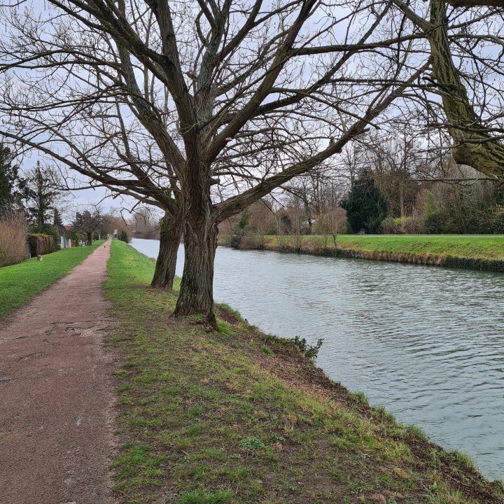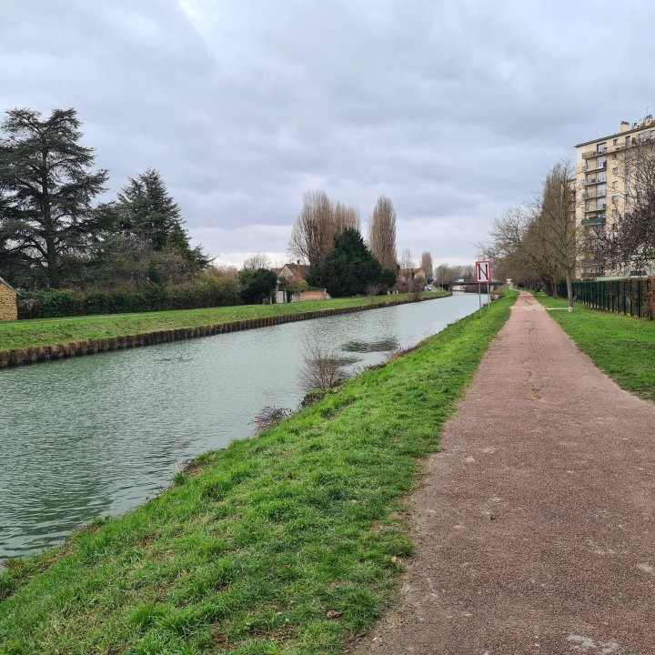 Suivez le balisage PR jaune en direction du sud. Il vous mènera en premier dans un parc ouvert, puis à la gare de Chelles. Vous pouvez vous arrêter ici si vous le souhaitez. J ai continué sur le PR en direction du canal de Chelles.