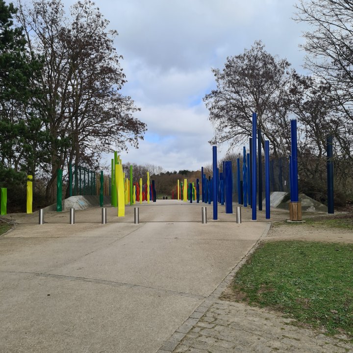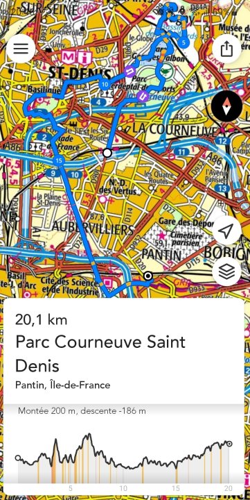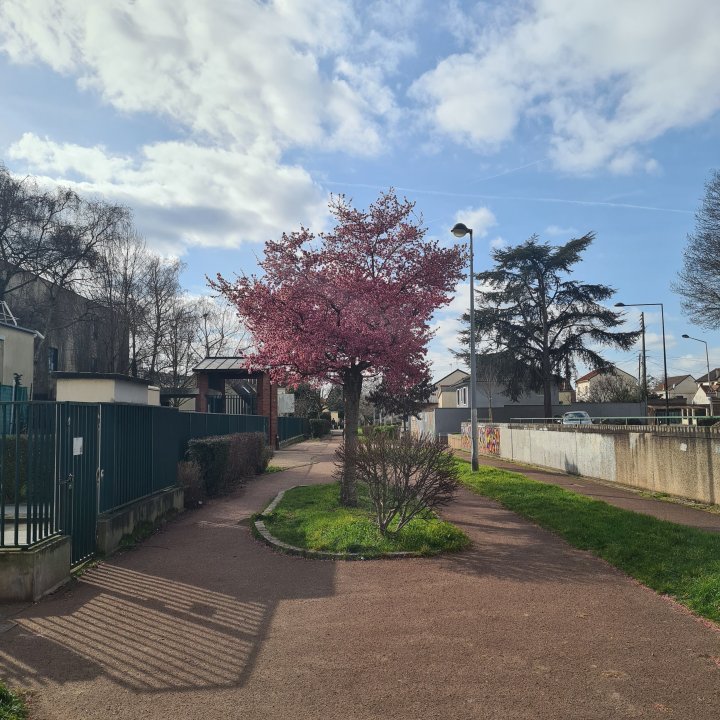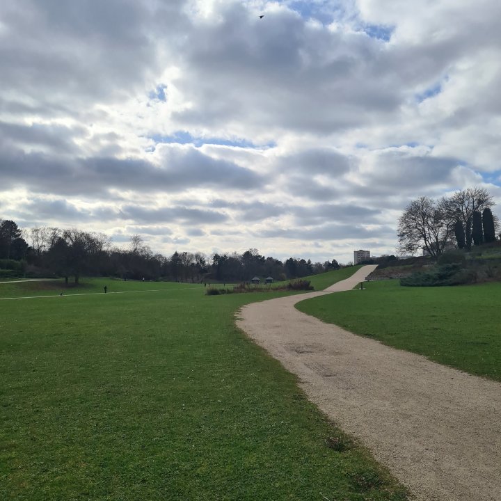Une fois sorti.e du parc, vous allez suivre un GR en direction de l’est face à vous. Vous longerez d’abord une zone dédiée aux sports avant de passer sur une promenade vers le petit parc Marcel Cachin.