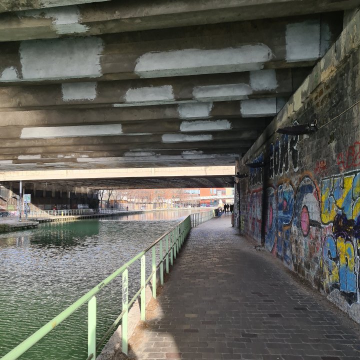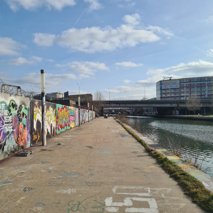 Prenez le canal sur votre gauche en direction du sud. C’est une longue ligne droite de 4 km jusqu’à Paris. La présence de nombreuses œuvres de street-art vous rendra ce moment beaucoup moins monotone qu’il n’y paraît.