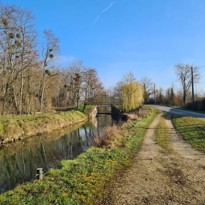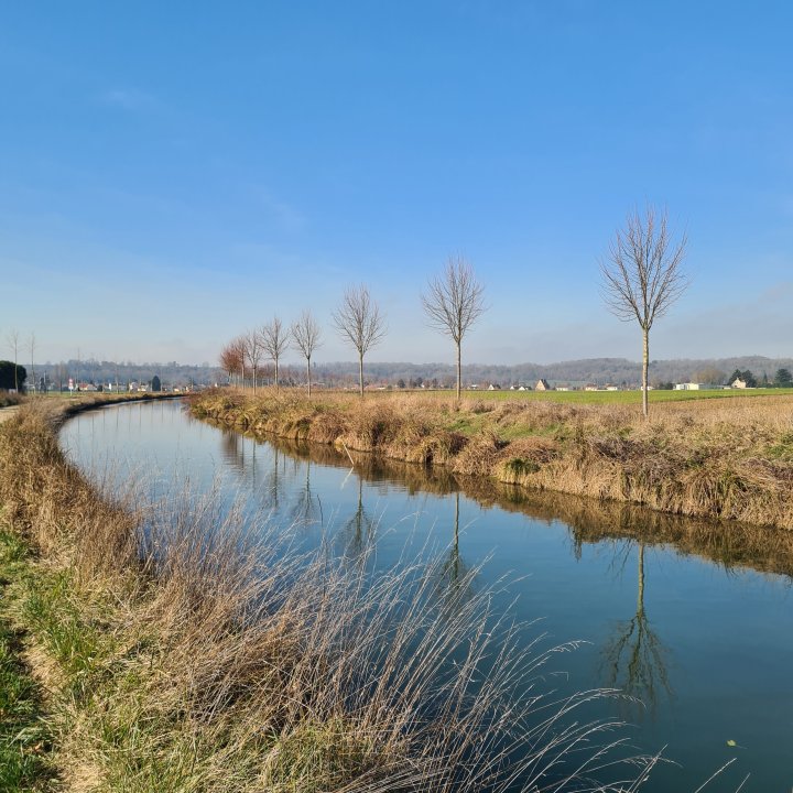 Ne traversez pas le pont et prenez sur votre droite. Vous êtes dorénavant sur un PR balisé en jaune. Vous allez suivre le petit canal de la Thérouanne qui sert à alimenter celui de L’ourcq. Vous le longez jusqu’à sa source au niveau du lycée des métiers du gué à Tresme.