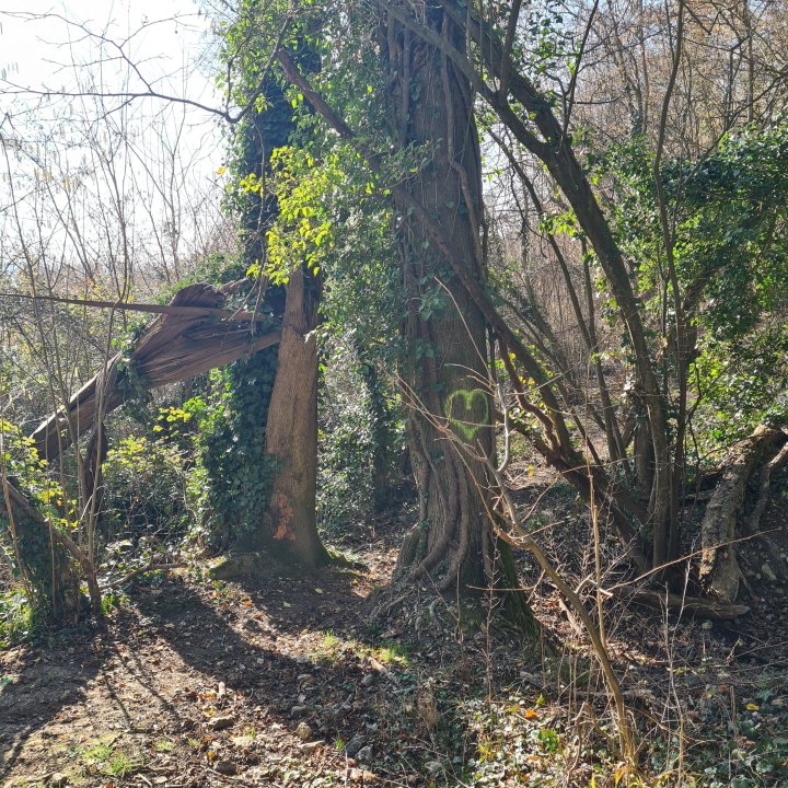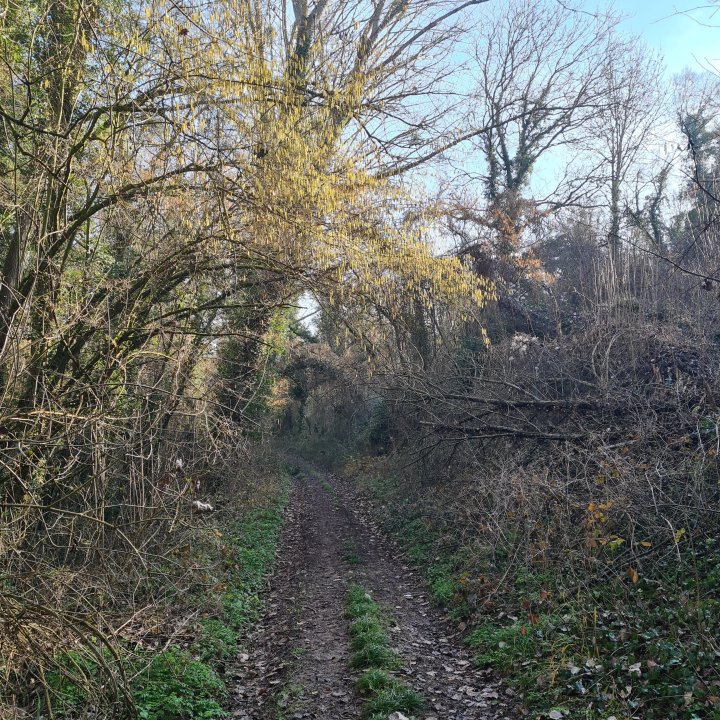 Remontez la pente face à l’usine, vous arrivez sur le canal de L’ourcq. Prenez vers l’est sur votre droite. Suivez le canal jusqu’au premier pont. Traversez ce dernier et allez vers le Nord. À quelques dizaines de mètres devant vous un chemin forestier partira sur votre gauche (ouest).