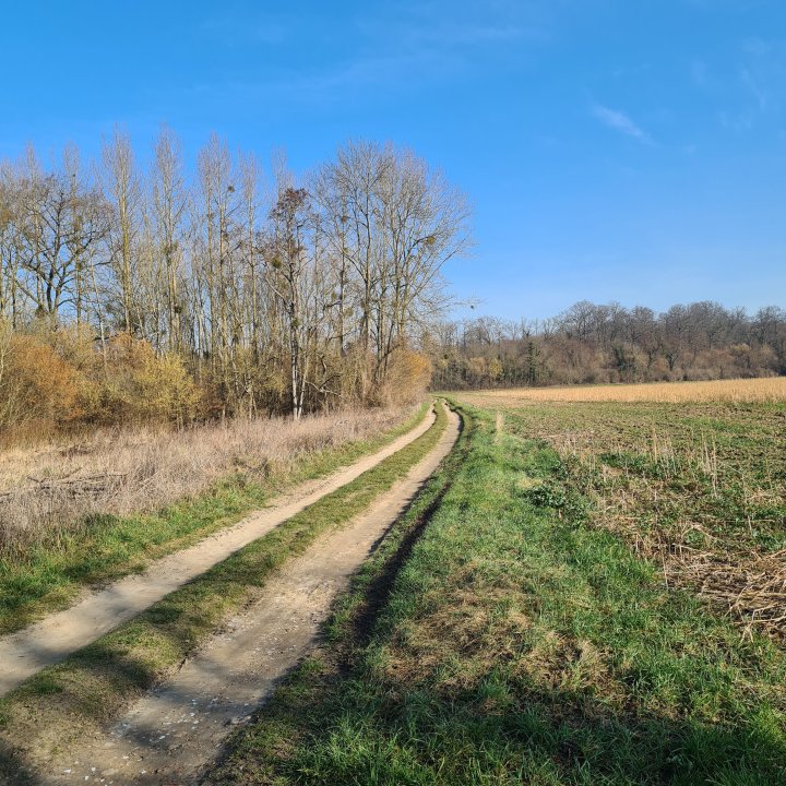 Une fois cette route traversée, continuez sur un sentier agricole en direction de l’ouest sur 4 km. Vous passerez d’abord en plein champ, puis proche d’une centrale électrique, pour arriver enfin sur une nationale au km 21.