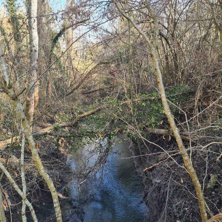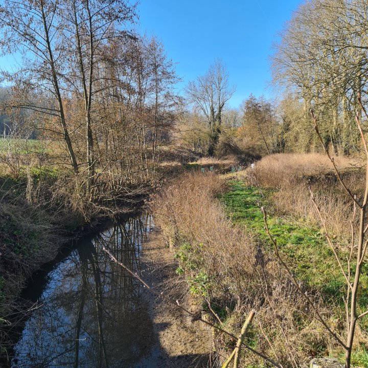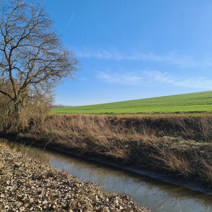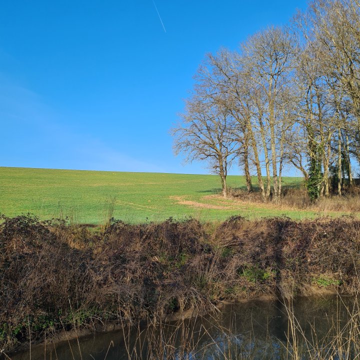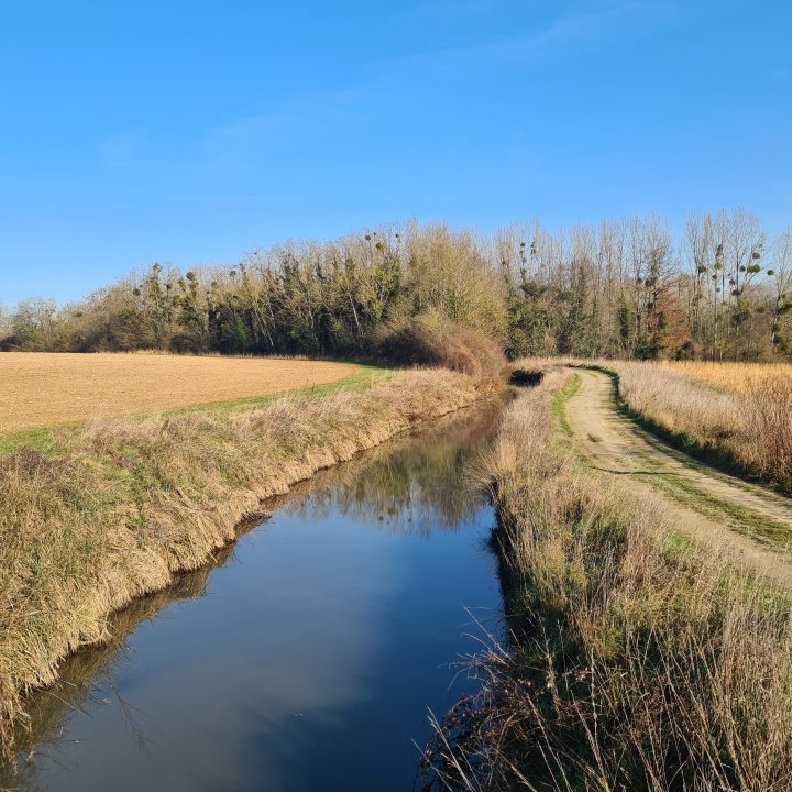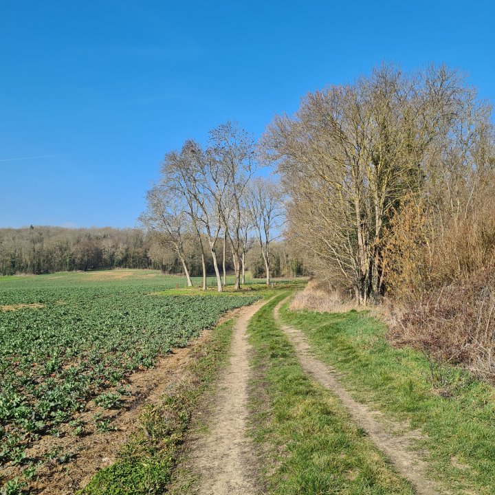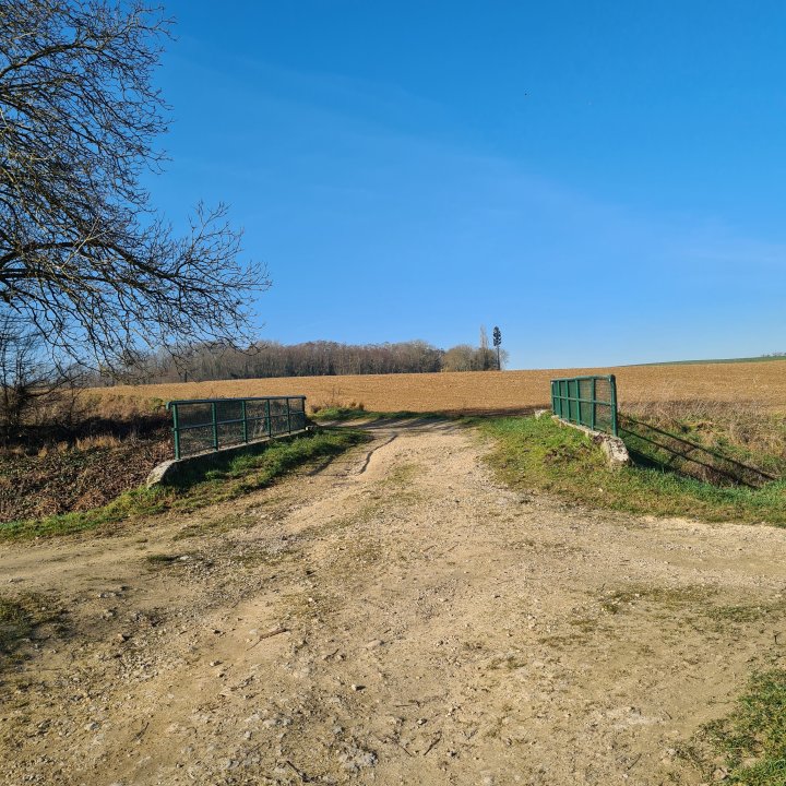 Quittez le canal vers l’est. Vous allez suivre dorénavant le ru de la Thérouanne entre bois et champs sur une sorte de boucle jusqu’à croiser un chemin agricole, prenez alors sur votre gauche (est) jusqu’au pont de la fesse.