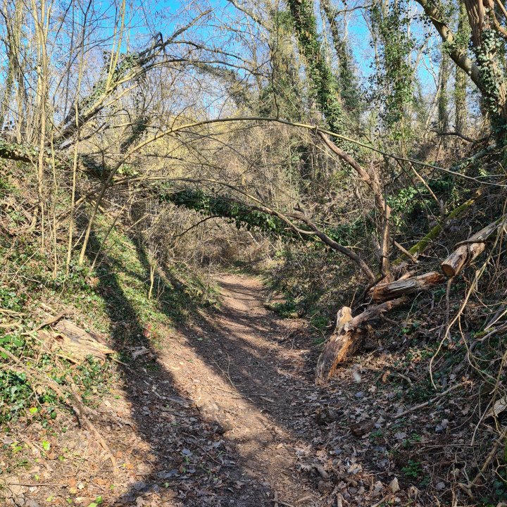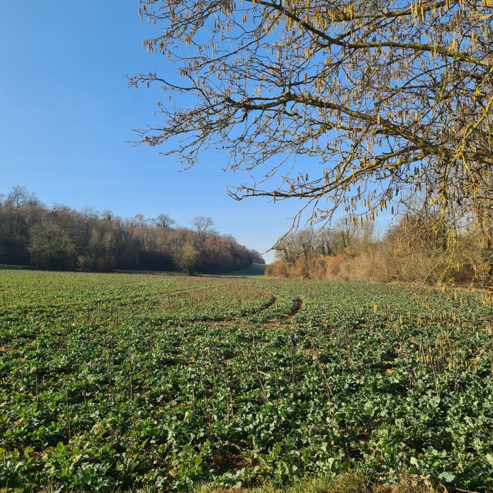 Ici le balisage préconise de suivre les rails. Pour éviter ce côté monotone, j’ai fait des indentations dans la forêt en contrebas sur des sentiers un peu dégradés (je préfère prévenir). Vous y verrez des vergers et aussi avec un peu de chance la fontaine d’Orteuil que j’ai cherché en vain. Reprenez ensuite le GR 1 qui s’éloigne peu à peu de la ligne LGV jusqu’à une route départementale.