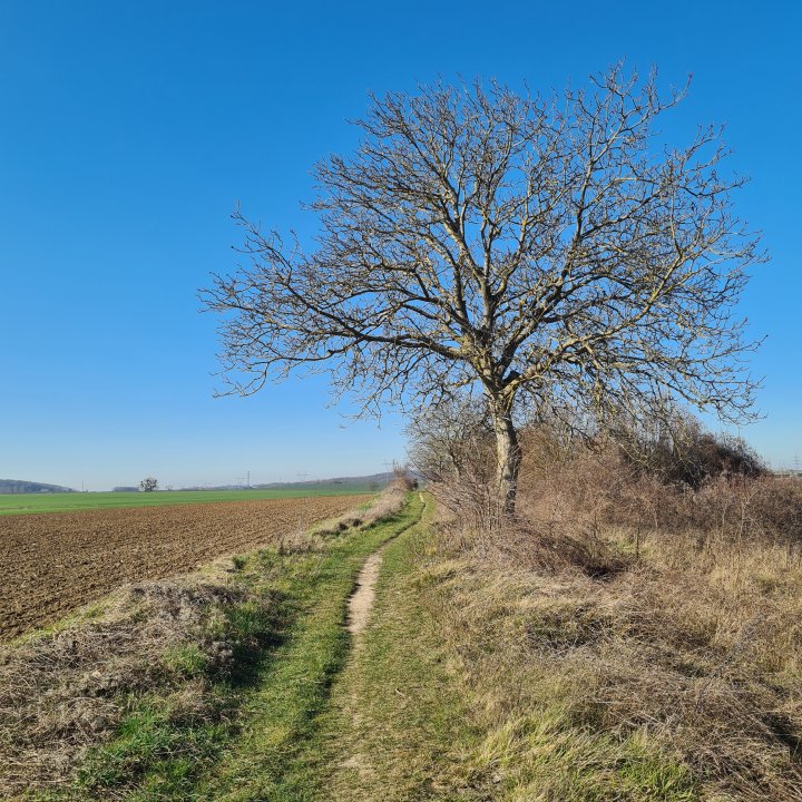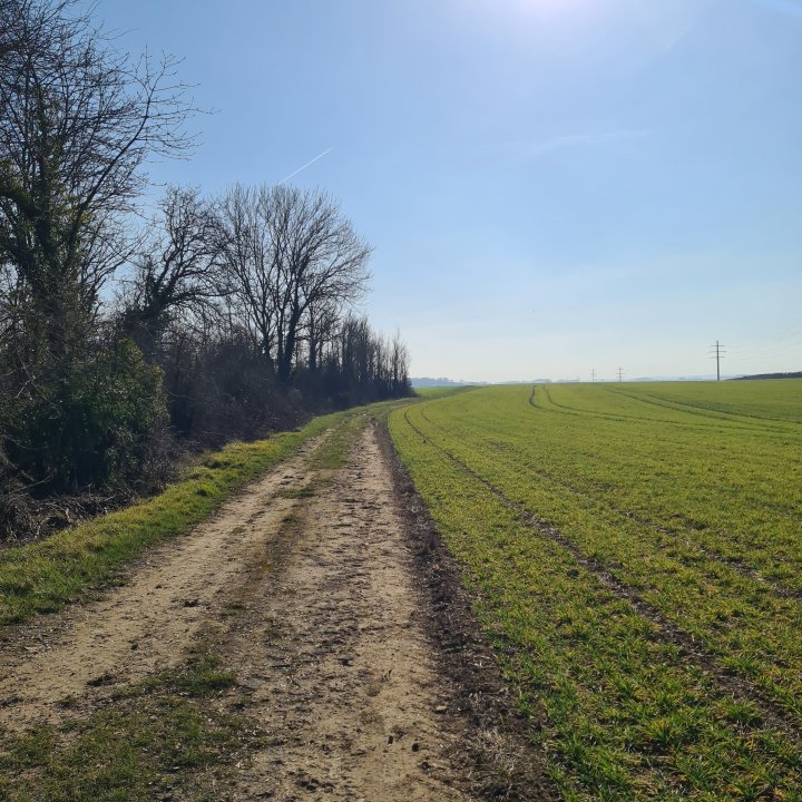 Traversez le pont pour passer sur l’autre rive et suivre le GR vers le Nord-est à travers champs et éloignez vous peu à peu du canal pour rentrer progressivement dans un petit massif forestier. Après une forte pente vous verrez devant vous une ligne LGV.