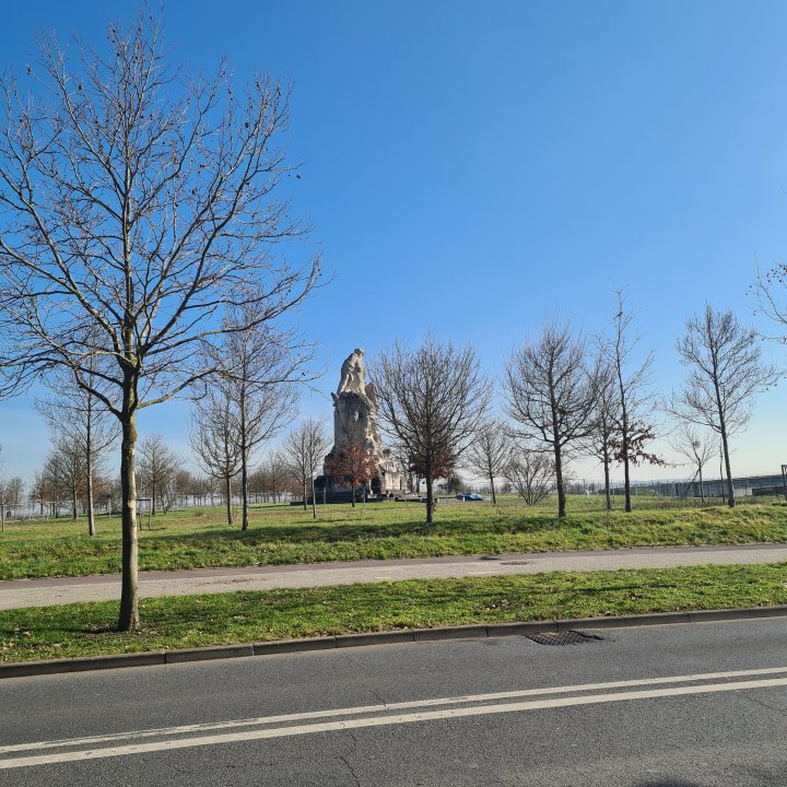 La route étant très passante et rapide, remontez vers le rond point sur votre gauche (est) pour ensuite revenir sur vos pas à travers une zone pavillonnaire sans grand intérêt. Toutefois vous passez juste à côté du musée de la Grande Guerre de Meaux et de sa gigantesque sculpture décapitée par un coup de tonnerre il y a quelques années.