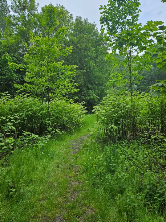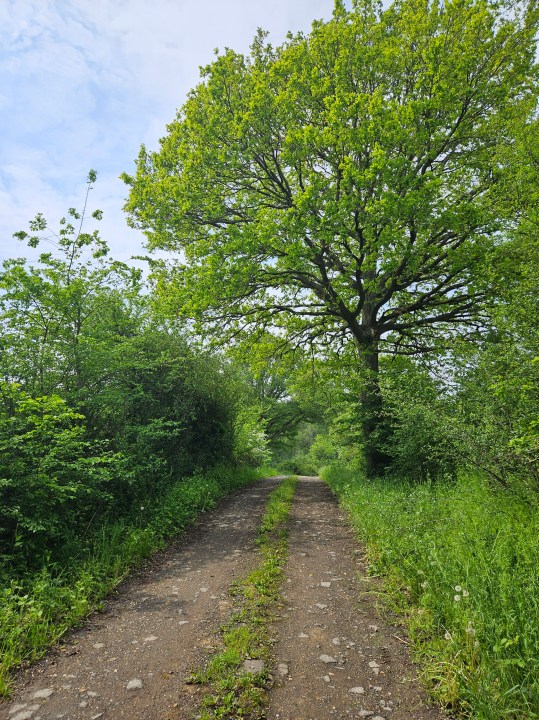 Prenez le premier sentier sur votre gauche vers l’est. Continuez tout droit en lisière de forêt jusqu’à déboucher sur une route bétonnée, le chemin des bois au km 13.