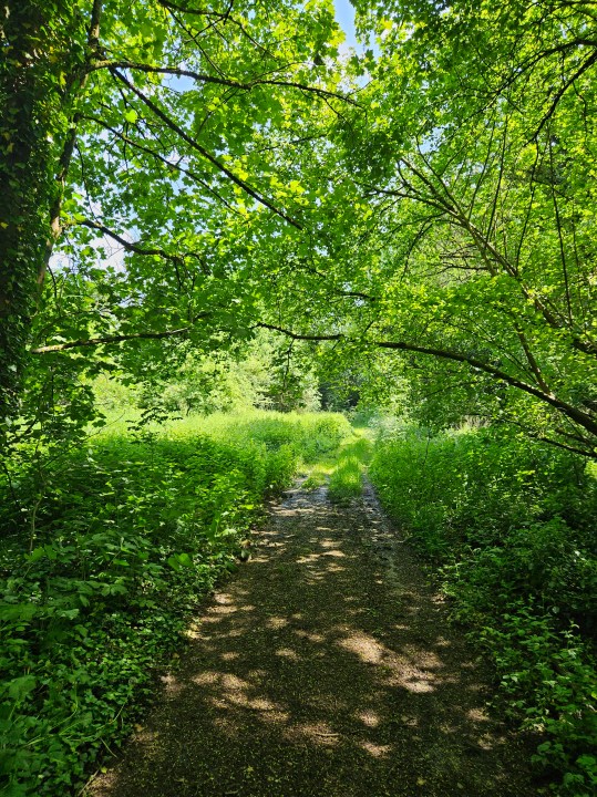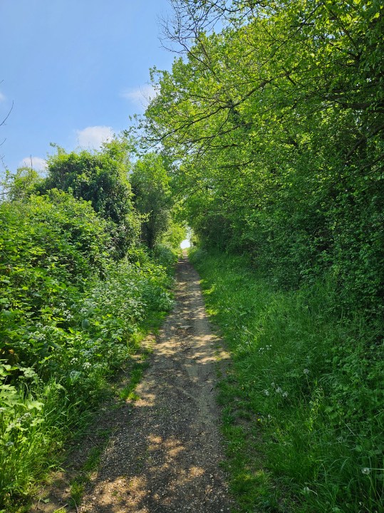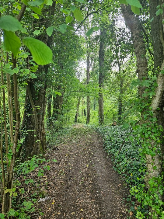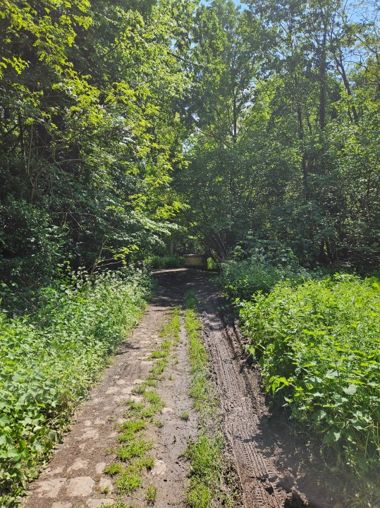 Une barrière vous coupe le chemin. Suivez les balises et prenez à gauche vers l’est: le chemin reprend vers le sud à travers champs. Ce jour-là, j ai été un sacripan, j’ai poursuivi à travers bois pour explorer jusqu’à une petite mare cachée avant de revenir sur le chemin agricole. Continuez tout droit jusqu’à un pont qui traverse une nationale.