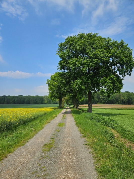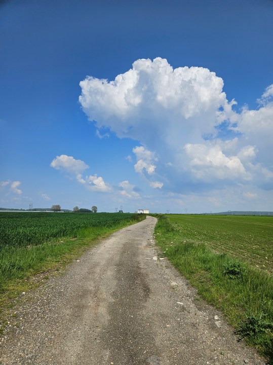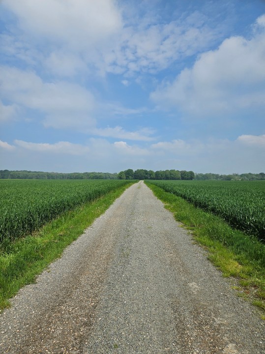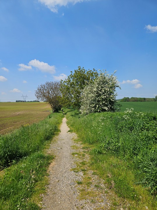 Une belle balade d’été à travers champs. Les sentiers sont calmes, les villages charmants et preuve que nous sommes presque dans le nord, des sentiers pavés seront présents sur une bonne partie du parcours. La particularité: une vue constamment dégagée ou pointera toujours la pointe d’un clocher ou le toit d’un silo.
