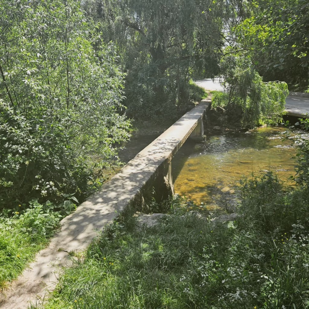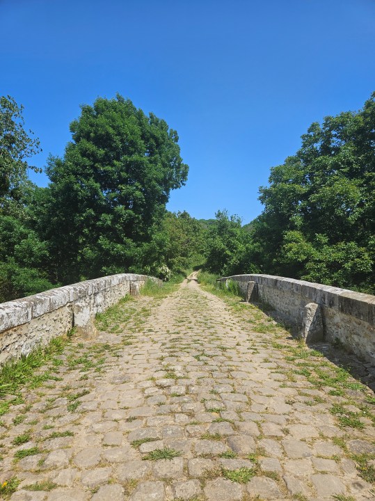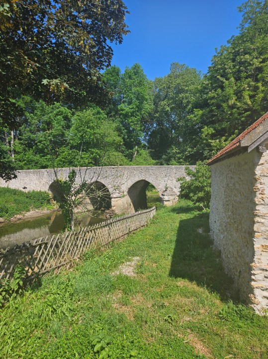 Reprenez votre chemin pour vous diriger vers l’est. Vous longerez une zone de sous-bois jusqu’à un croisement. Prenez à gauche pour rentrer dans le bois. Au bout, un autre pont en pierre, le magnifique pont des Romains.