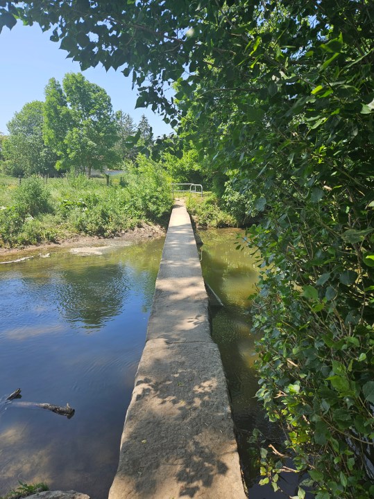 Ici, vous pouvez continuer sur le PR face à vous en direction de l’est. Vous pouvez aussi faire un petit détour pour voir le très beau pont Saint-Pierre.