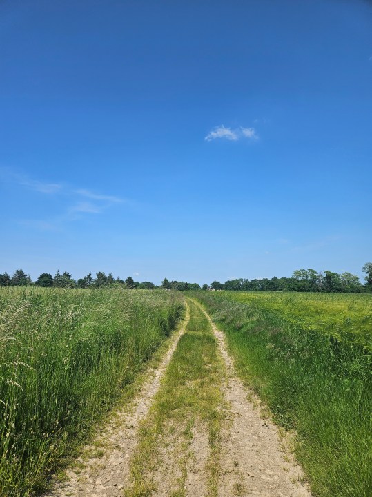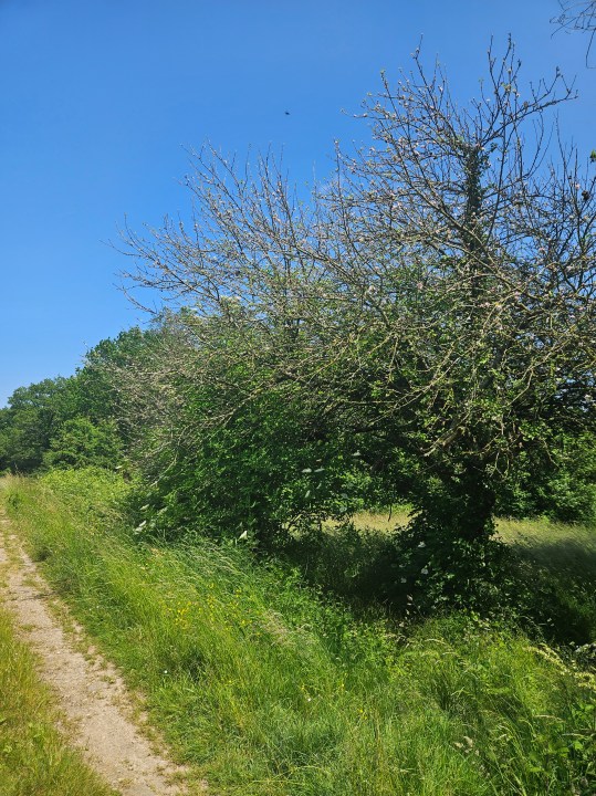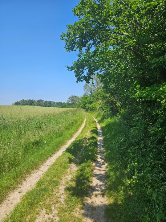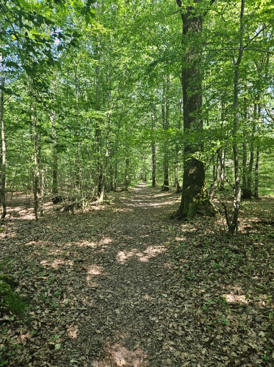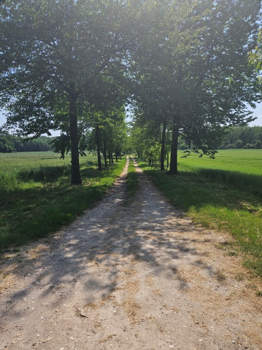 Une fois sèc.he.s, remontez vers la route et prenez sur la droite (sud) puis sur la gauche (est). Après une petite montée à travers bois vous débouchez sur une plaine traversée par une voie LGV. Vous longerez alors un sous-bois et des champs jusqu’à arriver au village des Etards le long d’une départementale passante.