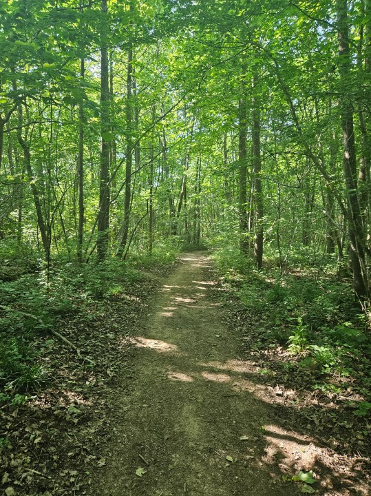 Où alors suivre ma trace, c’est un chemin moins passant, plus sauvage dans une sorte de tranchée naturelle. Bref dans tous les cas sortez de la forêt au niveau du km 27, c’est au dessus d’une voie ferrée.
