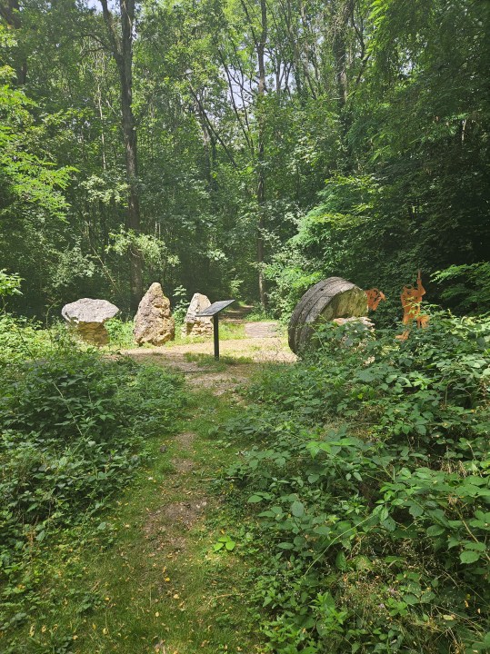 Quand vous sortirez de la foret, ce sera ladernière partie agricole avant d’arriver au bois départemental de la barrière. A partir de là, vous êtes sur un sentier balisé GR 14 (blanc et rouge). Traversez le bois départemental de la Barrière et songez que c’est un bon lieu pour faire une pause. Si vous êtes fatigué vous pouvez dès à présent vous diriger vers la gare en prenant vers le sud, suivez la direction GR gare sur les balises. Sinon vous pouvez faire comme moi et vous balader dans le bois pour ressortir au niveau du lavoir de Morintru au niveau du km 15. Un parcours sur le thème de la meulière est aménagé pour mieux connaitre cette industrie locale.