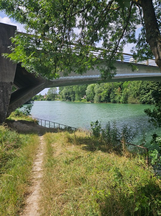 Suivez le GR pour traverser le village vers le sud, vous arriverez alors sur les bord de Marne, prenezà droite pour longer la Marne jusqu’au pont qui mène vers la petite ville de Sammeron. Au niveau du pont vous avez le choix de continuez sur la route, tourner à gauche sur un sentier à travers champs qui vous ramènera plus loin vers la Marne, où alors si vous n’avez pas peur, juste à la fin du pont une descente périlleuse mais faisable permet de descendre directement sur les bords de marne sur votre gauche vers l’Est.