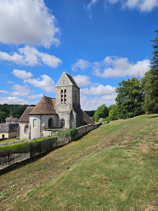 Traversez tout droit en suivant les balises jaunes d’un trajet PR. Dès le km 2, sur votre droite vous verrez un chemin pentu en foret. Vous le suivrez jusqu’au km 3. Prenez la départementale sur votre droite (ouest) et traversez le village de Faÿ-les-Nemours en direction du château, où vous pourrez faire une première pause.