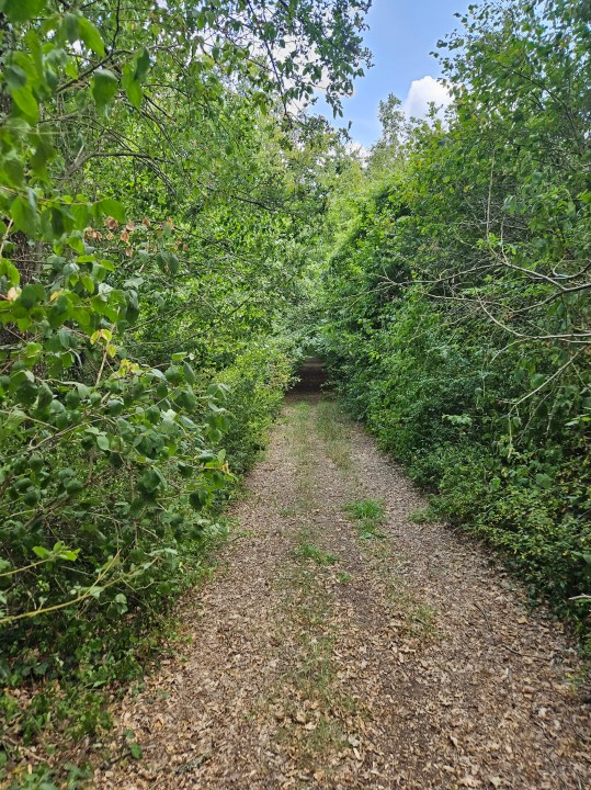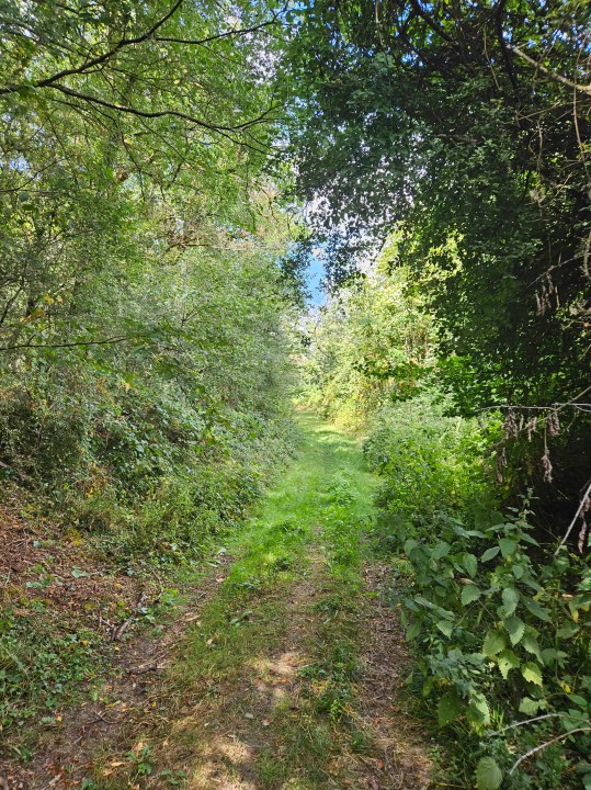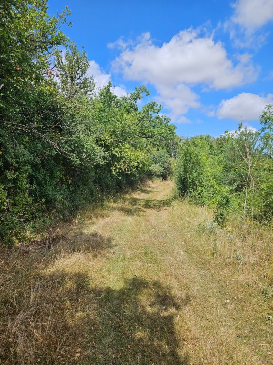 Traversez la route, légèrement sur la gauche vous verrez un petit chemin balisé qui se faufile entre les arbres vers le Nord-est, suivez le. Attention il est facile de le louper. Un magnifique chemin à travers les hautes herbes sur une ancienne vallée desséchée entourée de bois commence, c’est féerique. Continuez jusqu’à la voie ferrée, un passage vous permet de passer pour rejoindre le canal du Loing.