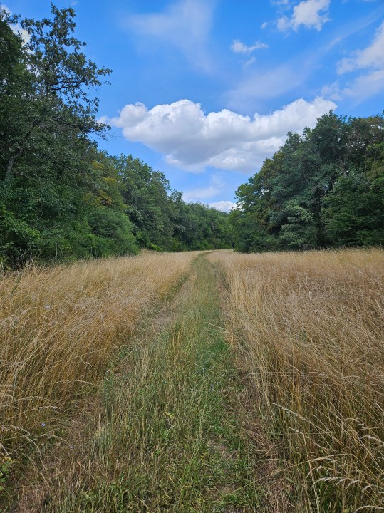 Suivez les balises, le chemin va vers le sud et peu à peu les bois vont laisser place aux champs. Au km 13, bifurquez sur votre gauche (est), vous quittez définitivement les espaces boisés pour les champs.